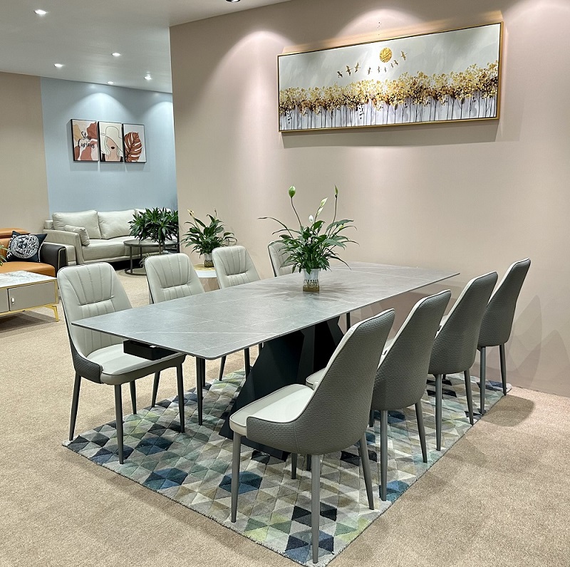 Bàn ăn được thiết kế mở rộng theo cách thức trượt ngang nhờ hệ thống ray trượt được trang bị ở mặt bàn giúp bạn có thể kéo dài mặt bàn về 2 phía, tăng thêm không gian ngồi từ 1,6m thành 2,3m. Chính vì thế, bạn có thể dễ dàng xếp thêm lên đến 12 ghế ngồi khi có khách ghé thăm nhà.