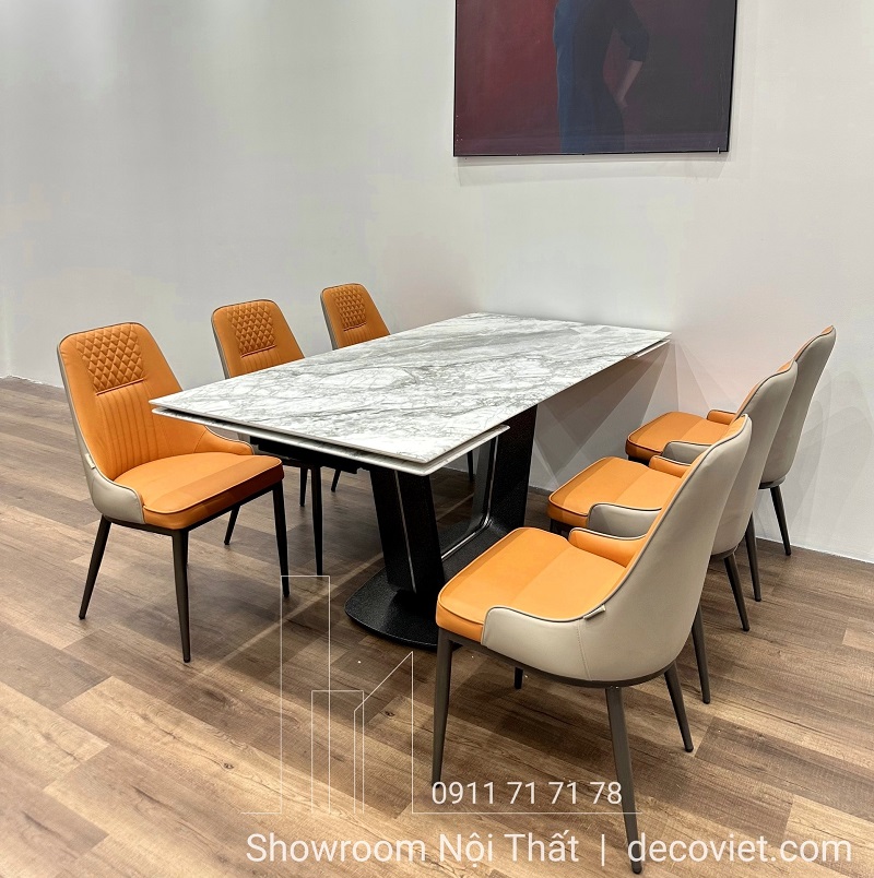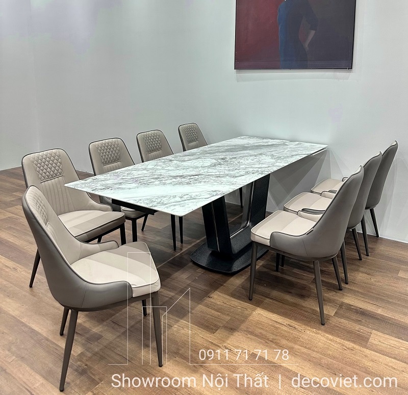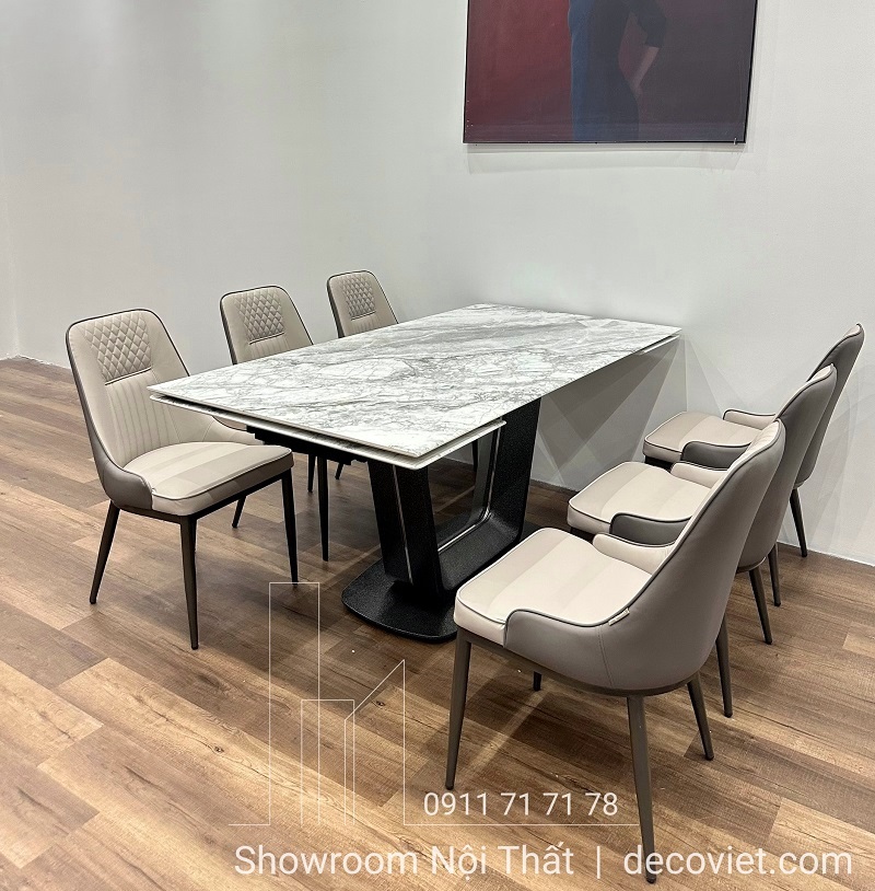 Bàn ăn kéo dài mặt đá nhập khẩu được coi là "vị cứu tinh" đối với những không gian phòng bếp có diện tích khiêm tốn. Với cơ chế kéo dài và gấp gọn linh hoạt, các mẫu bàn ăn thông minh mặt đá cao cấp mang đến sự sang trọng trong thiết kế cũng như những trải nghiệm tuyệt vời trong quá trình sử dụng. Bàn Ăn Thông Minh Mặt Đá 8 Ghế 1444S mà DecoViet giới thiệu đến bạn sau đây có thiết kế đẹp mắt, hợp xu hướng cùng tính năng thông minh, mở rộng và thu gọn mặt bàn nhanh chóng, đáp ứng nhu cầu về thẩm mỹ cũng như mục đích sử dụng.