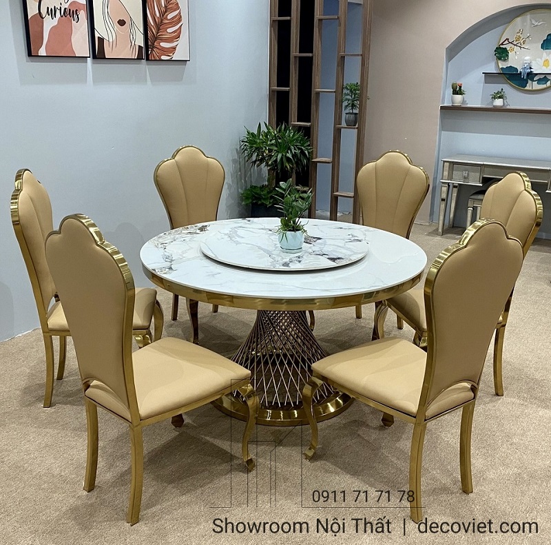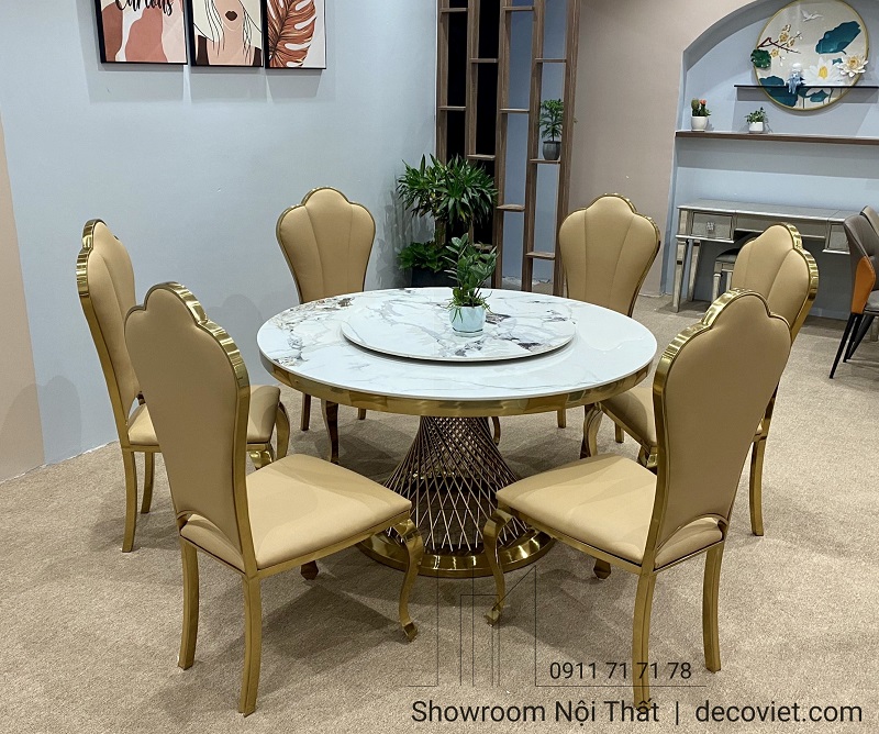 Chất liệu: chân inox mạ vàng, mặt đá cao cấp.