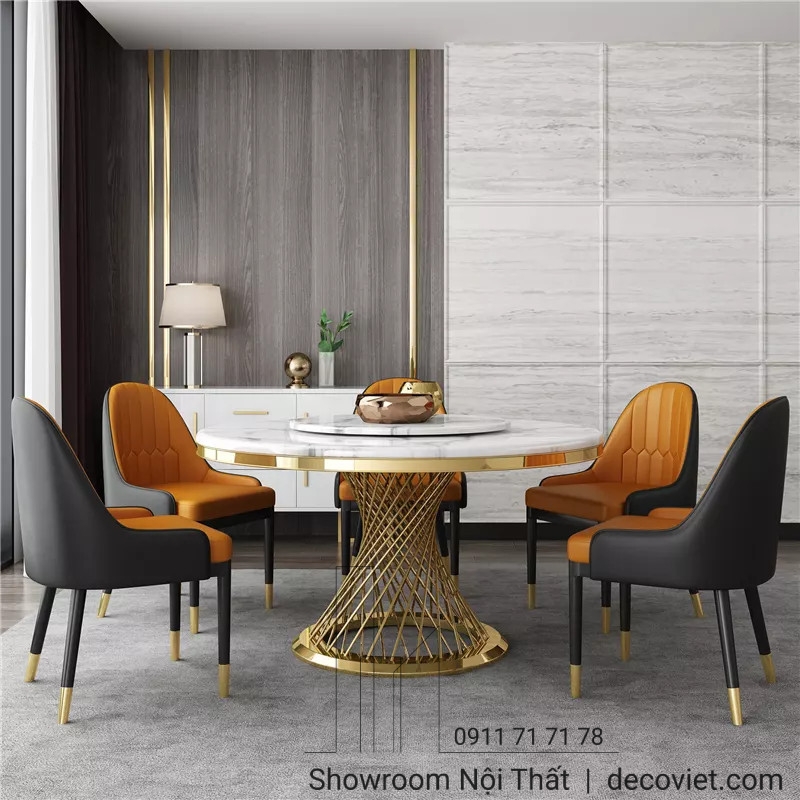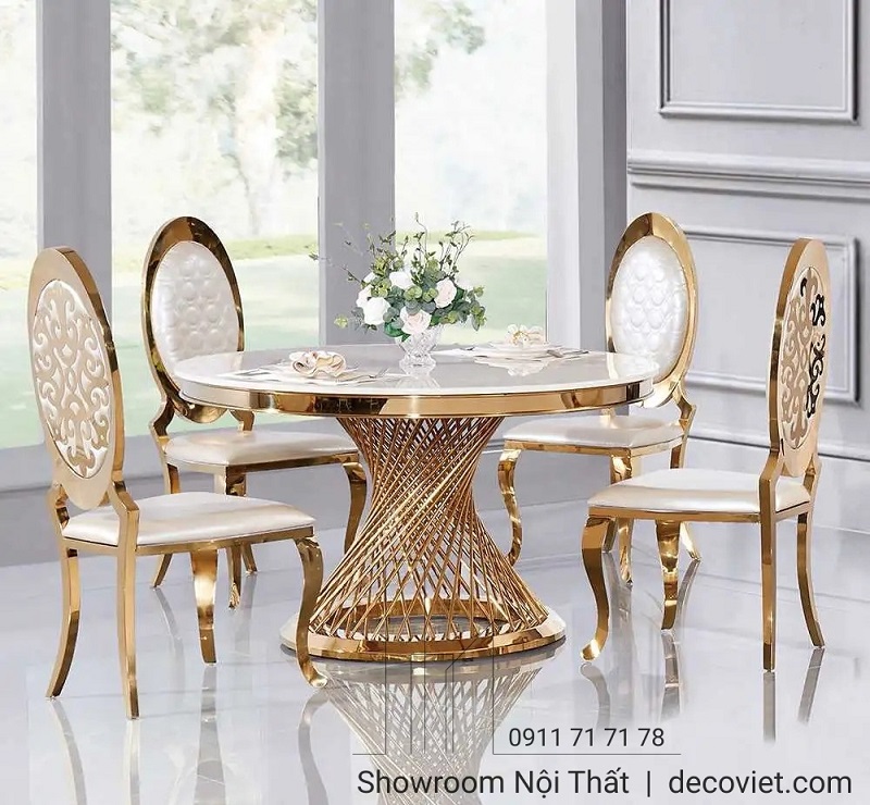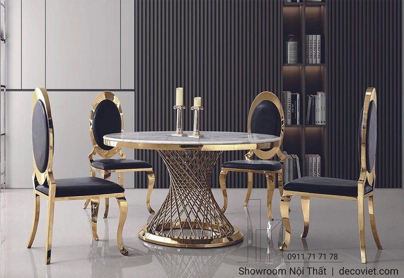 Chất liệu: chân inox mạ vàng, mặt đá cao cấp.