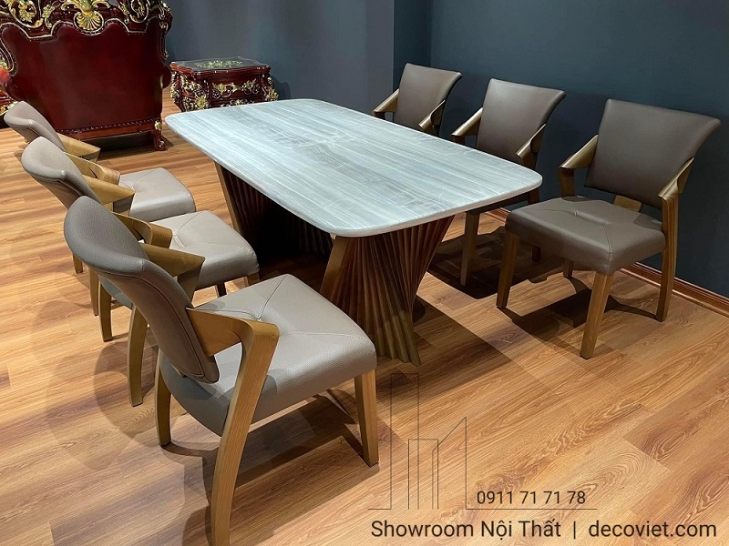 Là một trong những mẫu bàn ăn đẹp được yêu thích nhất tại DecoViet, Bàn Ăn Mặt Đá Cao Cấp dễ dàng kết hợp hài hòa với các món đồ nội thất trong phòng như thảm trải sàn, ghế ăn, tủ trang trí. Ngoài ra, dáng bàn ăn này còn có thể kết hợp với mặt bàn đá giúp không gian thêm sang trọng và tinh tế hơn.