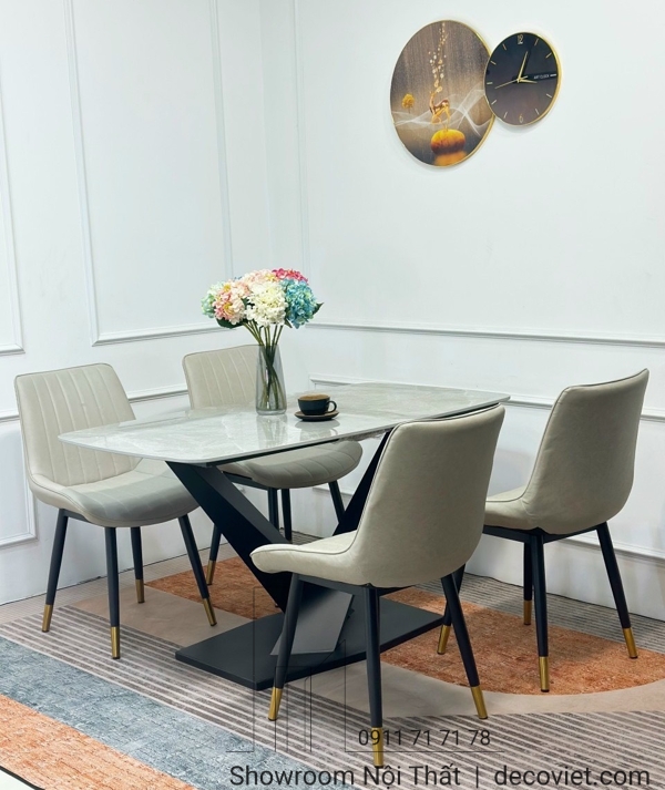 Nếu bạn mong muốn một bộ bàn ăn 4 ghế theo phong cách hiện đại, dễ sử dụng, cứng cáp, bền chắc, tối giản nhưng phải có điểm nhấn, thì DecoViet tin rằng sản phẩm bàn ăn 4 ghế trên đây chính là sản phẩm mà quý khách đang tìm kiếm. Bàn ăn mặt đá tại DecoViet có công năng sử dụng tiện nghi, thiết kế sang trọng, chất lượng cao và độ bền vượt trội. Đây là thiết kế được ưu chuộng và bán chạy nhất năm nay.