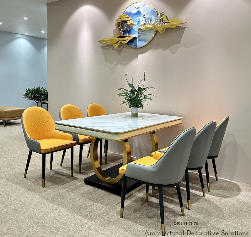 Là một trong những mẫu bàn ăn đẹp được yêu thích nhất tại DecoViet, Bàn Ăn Mặt Đá dễ dàng kết hợp hài hòa với các món đồ nội thất trong phòng như thảm trải sàn, ghế ăn, tủ trang trí. Ngoài ra, dáng bàn ăn này còn có thể kết hợp với mặt bàn đá giúp không gian thêm sang trọng và tinh tế hơn.