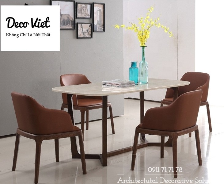Chất Liệu : 4 ghế bọc nệm, Chân bàn gỗ tự nhiên, mặt đá trắng vân.