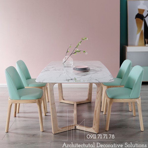 Chất Liệu : 4 ghế bọc nệm Chân gỗ tự nhiên mặt đá trắng vân.