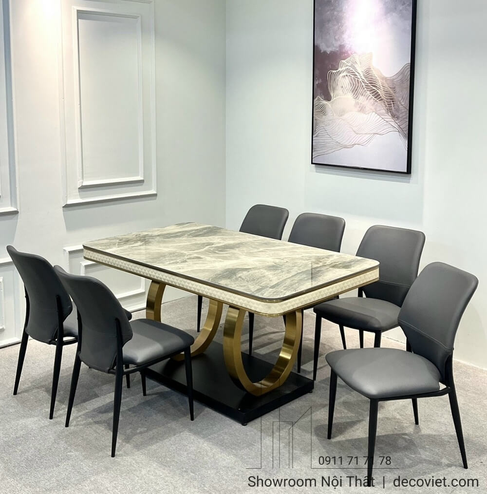 Một không gian phòng bếp đẹp nên sở hữu một bộ bàn ghế ăn cao cấp xứng tầm. Bộ bàn ăn 6 ghế mặt đá hiện đại là một sản phẩm sang trọng, đẳng cấp, phù hợp cho căn bếp của mọi gia đình hiện nay. Bộ Bàn Ăn 6 Ghế Cao Cấp 706S được thiết kế với sự kết hợp hoàn hảo giữa bàn mặt đá bền bỉ cùng với chân bàn đẹp mắt, tạo nên vẻ đẹp ấn tượng cho phòng ăn của bạn. Đây còn là sản phẩm bàn ăn đẹp tại DecoViet được đông đảo khách hàng tại yêu thích và lựa chọn cho không gian nhà mình.