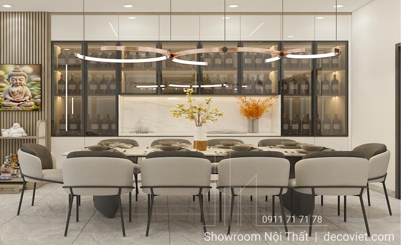 Một bộ bàn ăn 10 ghế nhập khẩu không chỉ khẳng định được vị thế của gia chủ mà còn tạo nên nét đẹp riêng biệt cho không gian ngôi nhà. Bộ bàn ăn mặt đá nhập khẩu 10 ghế tại DecoViet sẽ mang đến sự sang trọng, đẳng cấp trong từng đường nét, góp phần tạo dựng nên điểm nhấn ấn tượng cho căn bếp, từ khâu thiết kế, chọn kích thước giữa bàn ăn và ghế ăn, chất liệu mặt đá, kiểu dáng đều được DecoViet chọn lựa kỹ càng để tạo nên một sản phẩm đẹp và bắt mắt.