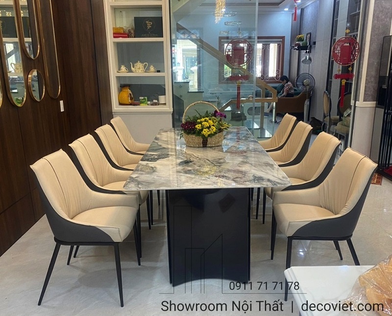 Bộ bàn ăn 8 ghế cao cấp đang là một trong những mẫu bộ bàn ghế phòng ăn được ưa chuộng tại Nội thất DecoViet. Sản phẩm không chỉ có chất lượng bền đẹp mà còn sở hữu thiết kế sang trọng và độc đáo, giúp căn bếp hay phòng ăn nhà bạn sẽ trở nên sang trọng, hiện đại và ấn tượng hơn.
