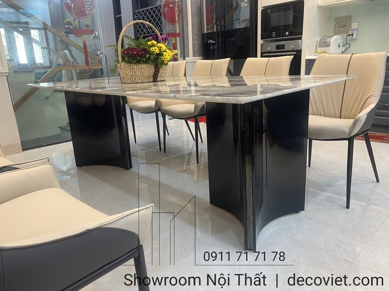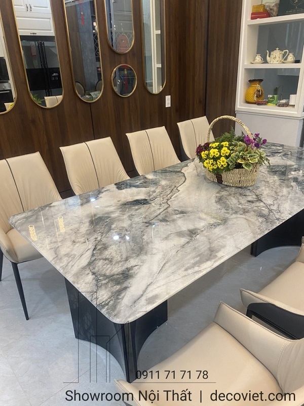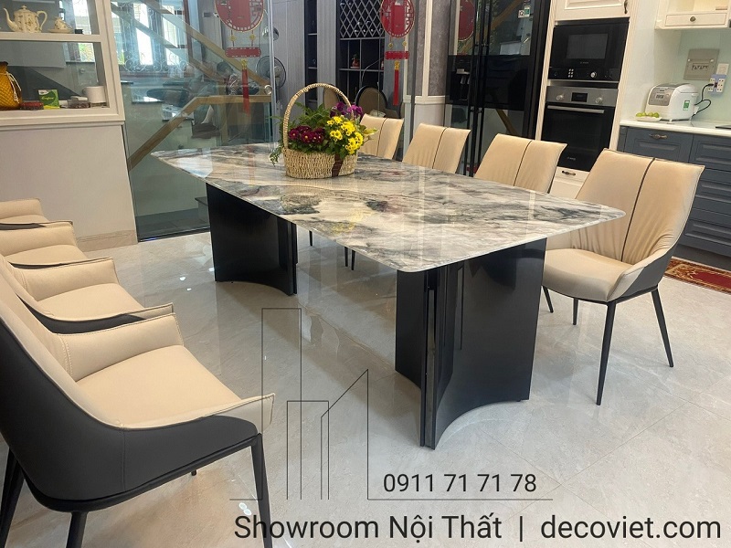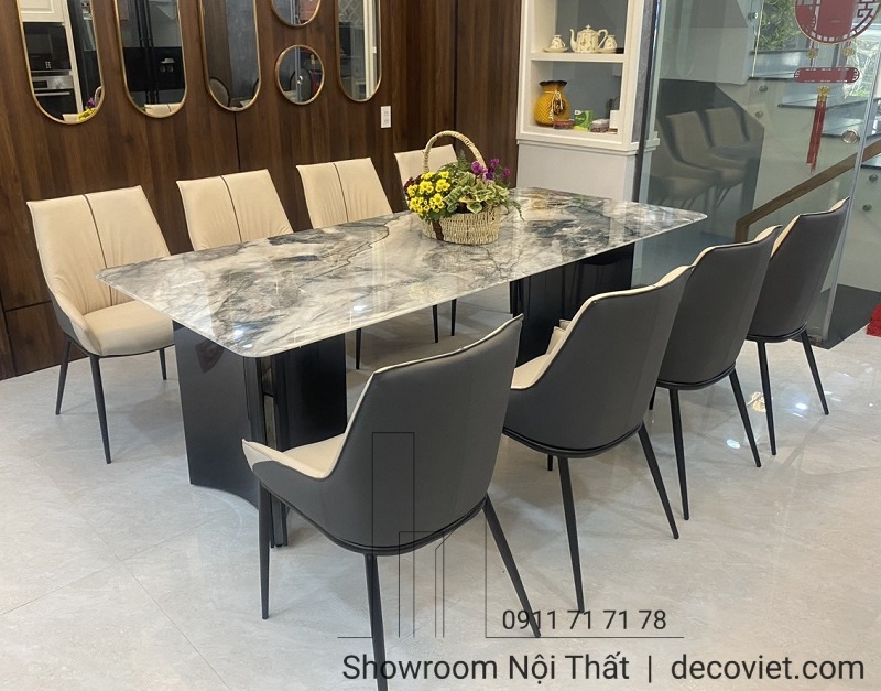 Trở lại với dòng sản phẩm bàn ăn đẹp cao cấp cho gia đình, DecoViet xin giới thiệu đến bạn Bàn Ghế Ăn Cao Cấp 8 Ghế 1627S với sự hài hòa giữa chất lượng cùng tính thẩm mỹ vượt bậc. Với thiết kế độc đáo theo xu hướng nội thất phòng bếp mới nhất hiện nay, bộ bàn ăn mặt đá nhập khẩu toát lên vẻ đẹp tinh tế, tạo ra một không gian ăn uống sang trọng và thời thượng. Cùng với độ hoàn hảo trong từng chi tiết, từng đường nét đều được tính toán kĩ lưỡng, mang đến sự thoải mái và tiện dụng nhất cho người dùng.