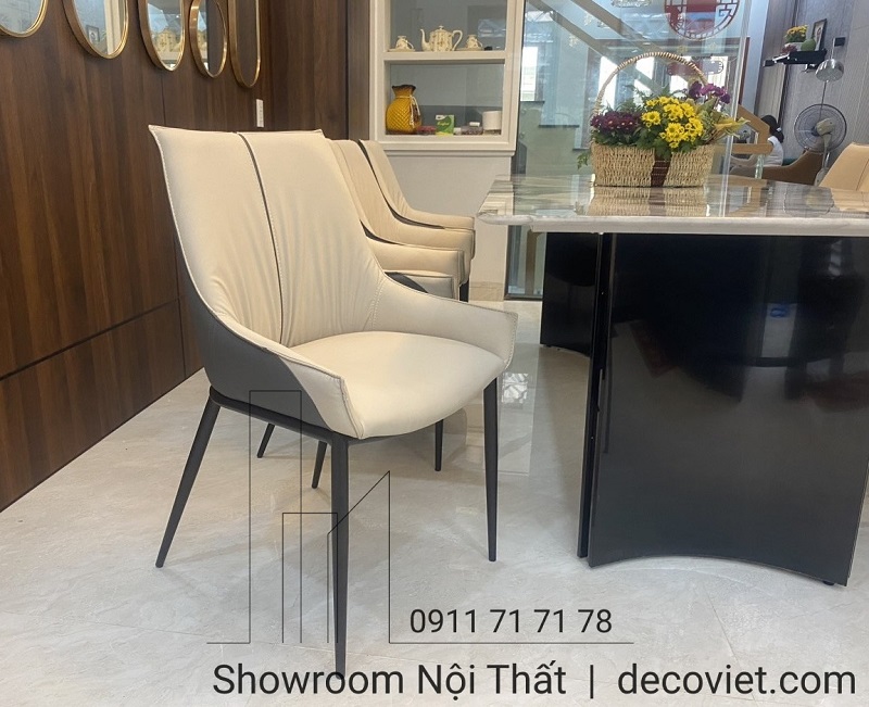 Được thiết kế với chiều cao tiêu chuẩn, ghế ăn đẹp tại DecoViet giúp hỗ trợ tư thế ngồi với phần tựa vòm rộng, ôm sát vào cơ thể bạn mà không gây cảm giác bí bách nhờ chất liệu da chống trầy cao cấp.
