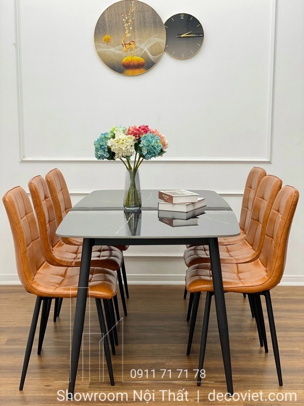 Nổi bật với thiết kế thanh lịch, đơn giản cùng tone màu ấm cúng của mặt đá ceramic hoàn mỹ, bộ bàn ăn 6 ghế mặt đá mà DecoViet mang đến cho bạn dưới đây giúp nâng tầm trải nghiệm dùng bữa cũng như tô điểm không gian sống của quý khách thêm tiện nghi.