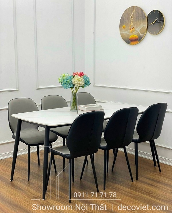 Nổi bật với thiết kế thanh lịch, đơn giản cùng tone màu ấm cúng của mặt đá ceramic hoàn mỹ, bộ bàn ăn 6 ghế mặt đá mà DecoViet mang đến cho bạn dưới đây giúp nâng tầm trải nghiệm dùng bữa cũng như tô điểm không gian sống của quý khách thêm tiện nghi.