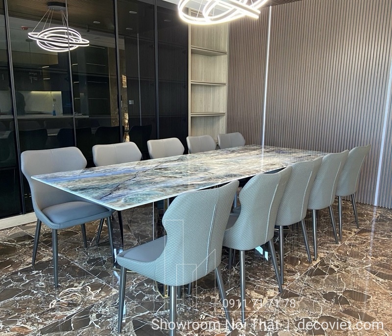 Một bộ bàn ăn 10 ghế nhập khẩu không chỉ khẳng định được vị thế của gia chủ mà còn tạo nên nét đẹp riêng biệt cho không gian ngôi nhà. Bộ bàn ăn mặt đá nhập khẩu 10 ghế tại DecoViet sẽ mang đến sự sang trọng, đẳng cấp trong từng đường nét, góp phần tạo dựng nên điểm nhấn ấn tượng cho căn bếp, từ khâu thiết kế, chọn kích thước giữa bàn ăn và ghế ăn, chất liệu mặt đá, kiểu dáng đều được DecoViet chọn lựa kỹ càng để tạo nên một sản phẩm đẹp và bắt mắt.