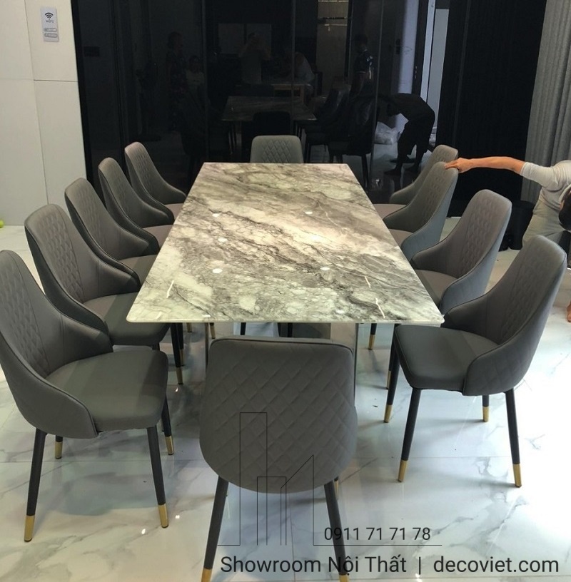 Hãy đến ngay DecoViet để sở hữu một không gian bếp hoàn hảo với Bàn Ăn 12 Ghế Mặt Đá Nhập Khẩu 1695S. Bộ bàn ăn mặt đá sang trọng, mang phong cách hiện đại cùng thiết kế thời thượng sẽ là điểm nhấn hoàn mỹ cho không gian sống của quý khách!