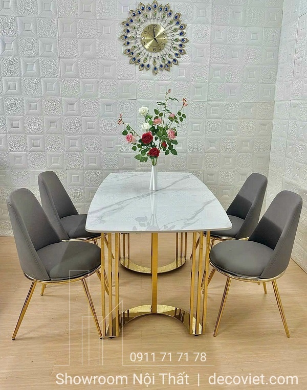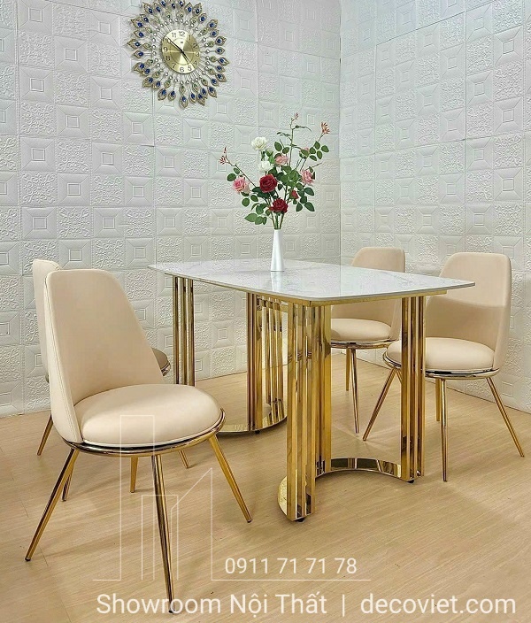 Bộ bàn ăn chân inox mặt đá luôn mang đến vẻ đẹp sang trọng và mới lạ, vì thế được rất nhiều gia chủ yêu thích và lựa chọn cho căn bếp nhà mình. Bàn Ăn 4 Ghế Hiện Đại 1639S với thiết kế nổi bật và ấn tượng, kích thước bàn ăn 4 người cũng rất phù hợp với nhiều không gian nhà ở hiện nay, giúp bạn tiết kiệm diện tích căn bếp hiệu quả. Bộ bàn ăn 4 ghế mặt đá tại DecoViet luôn được thiết kế theo tiêu chuẩn chất lượng, đảm bảo sự thoải mái cho người ngồi dùng bữa, giúp mang đến những bữa cơm ngon miệng mỗi ngày cho gia đình bạn.