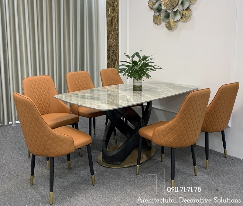 Với xu hướng những năm gần đây là thiết kế tối giản, mẫu bàn ăn mới Bàn Ăn 6 Ghế Hiện Đại 818S chính là sự lựa chọn cho khách hàng với mong muốn có một không gian bếp vừa tối giản nhưng không kém phần độc đáo tinh tế. Bàn có chất liệu mặt đá cao cấp và điểm nhấn là phần đế được thiết kế sang trọng với những đường cong tinh tế sẽ tô điểm thêm cho căn bếp của quý khách thêm hoàn hảo.