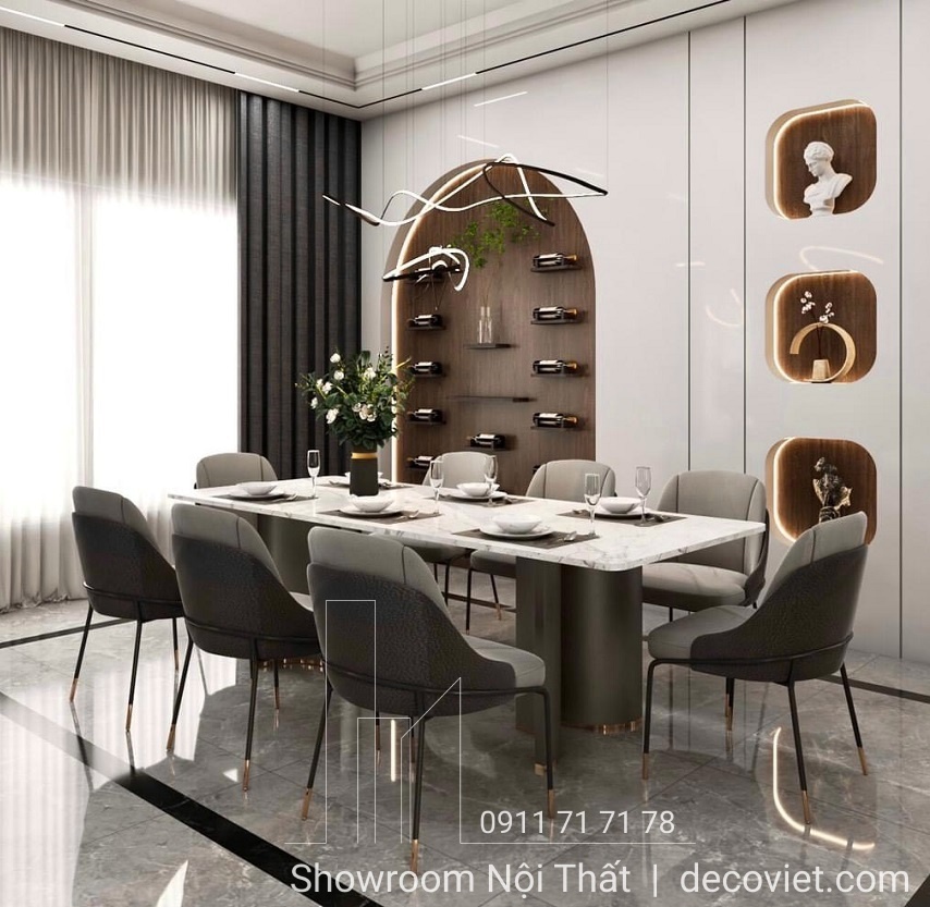 Hãy đến ngay DecoViet để sở hữu một không gian bếp hoàn hảo với Bàn Ăn 8 Ghế Hiện Đại Mặt Đá 1681S. Bộ bàn ăn mặt đá sang trọng, mang phong cách hiện đại cùng thiết kế thời thượng sẽ là điểm nhấn hoàn mỹ cho không gian sống của quý khách!