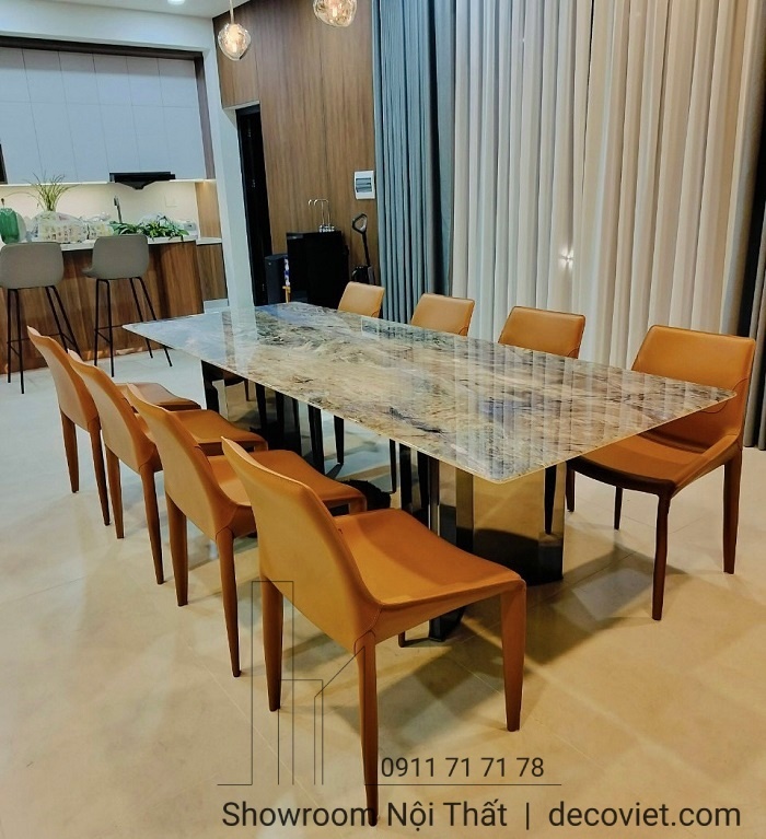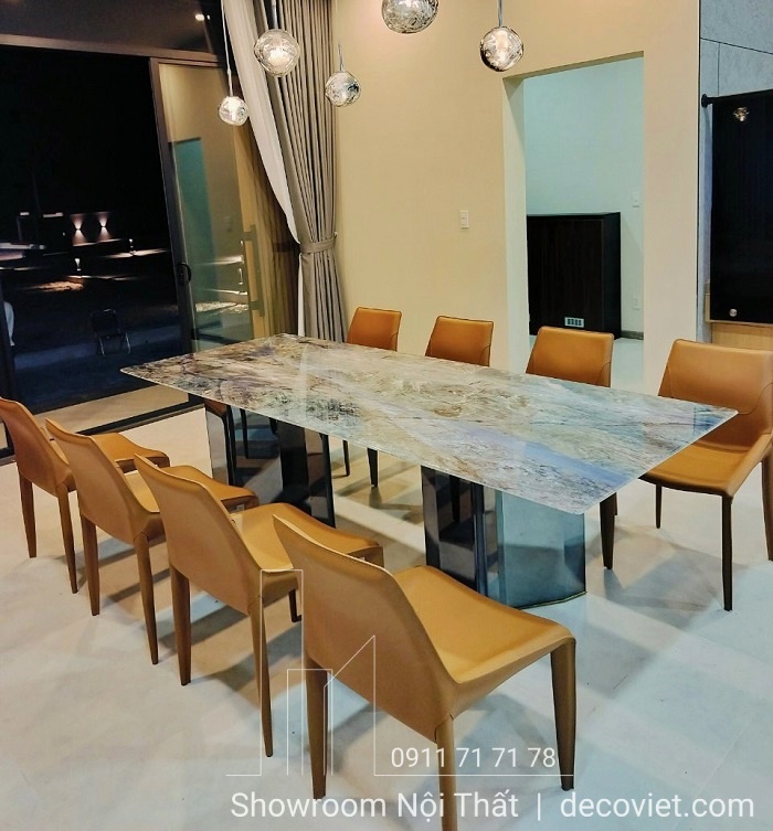 Một không gian phòng bếp đẹp nên sở hữu một bộ bàn ghế ăn xứng tầm. Bởi vì bên cạnh mang lại sự sang trọng và ấn tượng cho không gian, mà bộ bàn ăn 8 ghế mặt đá còn giúp cho căn bếp trở nên hài hòa, đáp ứng đủ nhu cầu sử dụng cho gia đình. Bàn Ăn 8 Người Mặt Đá Cao Cấp 1675S là mẫu bàn ăn đẹp mà DecoViet muốn gợi ý đến bạn. Với thiết kế hoàn hảo từ kiểu dáng, chất lượng bền bỉ vượt trội, bàn ăn 8 ghế hiện đại này giúp căn bếp của bạn trở nên đẳng cấp và tinh tế hơn, đồng thời giúp phục vụ tốt những bữa ăn mỗi ngày và khi gia đình bạn tổ chức những buổi tiệc tùng, họp mặt ấm cúng.