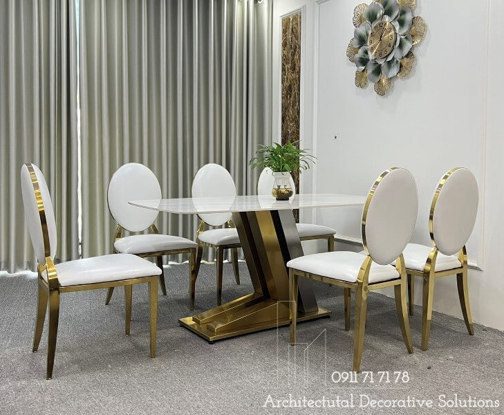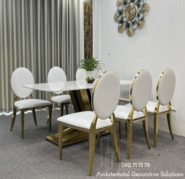Nền nã, chắc chắn và sang trọng chính là những gì có thể miêu tả về mẫu bàn ăn này. Mặt bàn bằng chất liệu đá nhập cao cấp chống thấm sử dụng bền bỉ. Ngoài ra mặt bàn hình chữ nhật và màu trắng vừa tạo cảm giác không gian rộng thoáng, tươi sáng hơn.