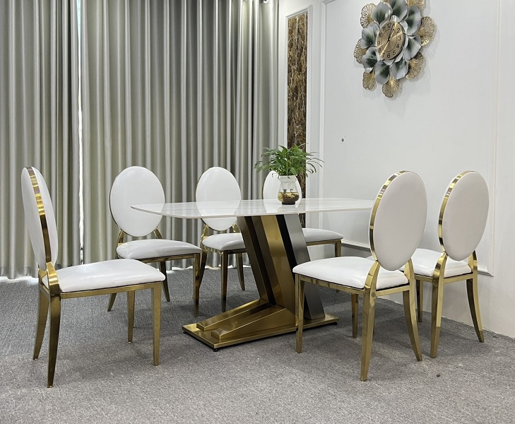 Nếu bạn đang cần tìm một bộ bàn ghế ăn giúp căn bếp của mình trở nên cao cấp sang trọng, thì mẫu Bàn Ăn Cao Cấp 6 Ghế 835S chính là sự lựa chọn hợp lý. Với sự kết hợp hài hòa giữa chất liệu đá nhập cao cấp và chân sắt bền chắc đã tạo nên một sản phẩm bàn ăn hoàn hảo vừa đáp ứng được tính thẩm mỹ cũng như trãi nghiệm sử dụng.