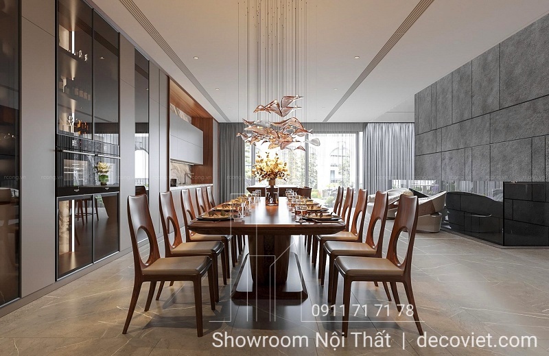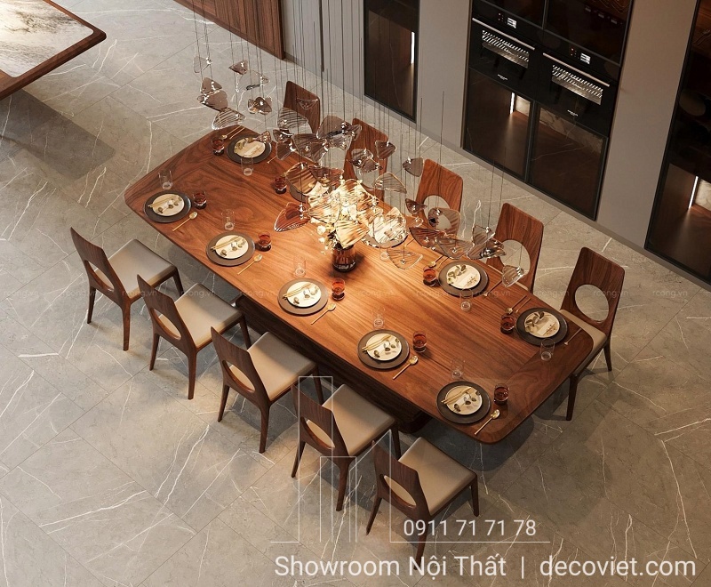 Nếu không gian phòng bếp nhà bạn rộng rãi, thì hãy nên bày trí một bộ bàn ghế ăn xứng tầm. Bởi vì bên cạnh mang lại vẻ đẹp cuốn hút, sự sang trọng và ấn tượng cho không gian, mà bộ bàn ăn 10 ghế gỗ còn giúp cho căn bếp trở nên hài hòa, đáp ứng đủ nhu cầu sử dụng cho gia đình. Bàn Ăn Gỗ 10 Ghế Hiện Đại 1727S mẫu mới nhất vừa ra mắt tại Nội thất DecoViet, có thiết kế hoàn hảo từ kiểu dáng, chất lượng bền bỉ vượt trội, giúp mang đến cho bạn và người thân những bữa cơm ngon miệng và thoải mái nhất.