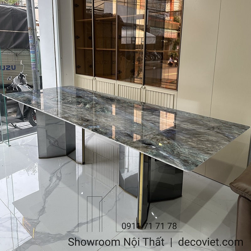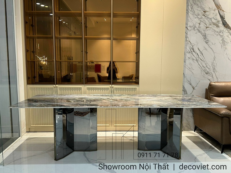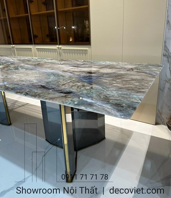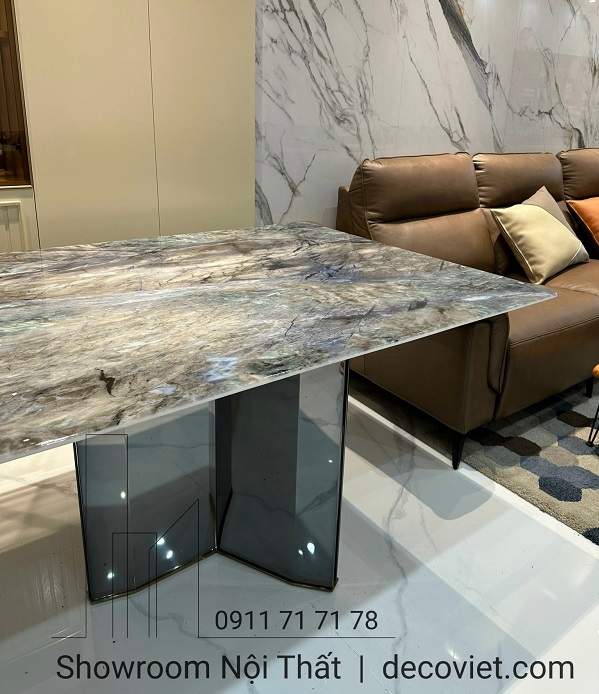 Một bộ bàn ăn mặt đá nhập khẩu không chỉ khẳng định được vị thế của gia chủ mà còn tạo nên nét đẹp riêng biệt cho không gian ngôi nhà. Bộ bàn ăn mặt đá cao cấp tại DecoViet sẽ mang đến sự sang trọng, đẳng cấp trong từng đường nét, góp phần tạo dựng nên điểm nhấn ấn tượng cho căn bếp, từ khâu thiết kế, chọn kích thước giữa bàn ăn và ghế ăn, chất liệu mặt đá, kiểu dáng đều được DecoViet chọn lựa kỹ càng để tạo nên một sản phẩm đẹp và bắt mắt.