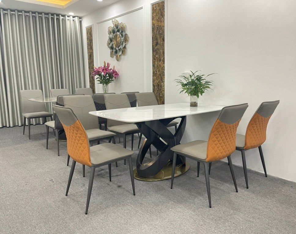 Bàn ăn 784S là một trong những mẫu bàn ăn được thiết kế theo xu hướng hiện đại, tối giản nhưng không nhàm chán. Phần mặt bàn được làm từ đá ceramic cao cấp với vân đá cực kỳ sang trọng.