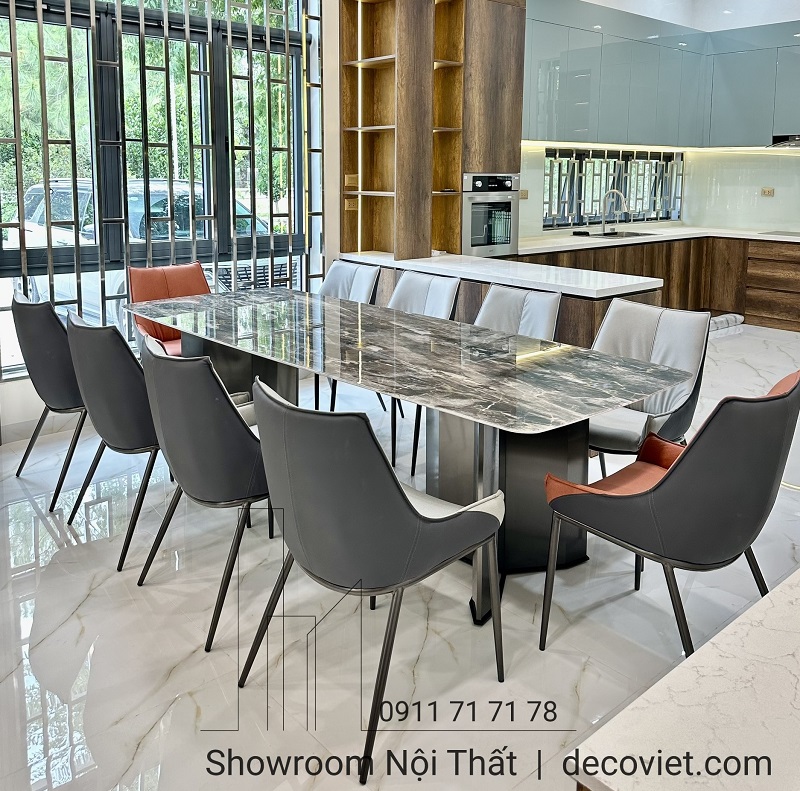 Bộ bàn ăn mặt đá nhập khẩu là mẫu bàn ăn đẹp đang rất được ưa chuộng trên thị trường nội thất hiện nay. Bàn ăn mặt đá marble cao cấp gây ấn tưởng bởi thiết kế hiện đại, sang trọng theo phong cách châu Âu. Bàn Ăn Mặt Đá Marble 10 Ghế 1385S được cách tân tối giản nhưng vẫn thể hiện sự sang trọng, tinh tế mà nó đem lại. Mẫu bàn ăn 10 ghế hiện đại này đã trở thành lựa chọn hàng đầu, giúp tô điểm không gian bếp của mỗi gia đình thêm tầm đẳng cấp.