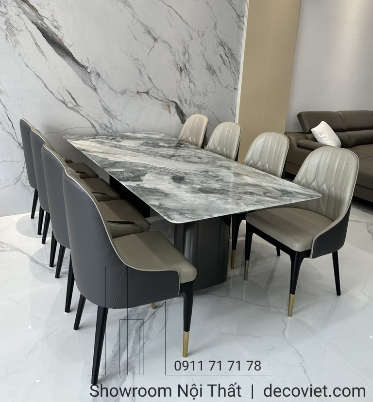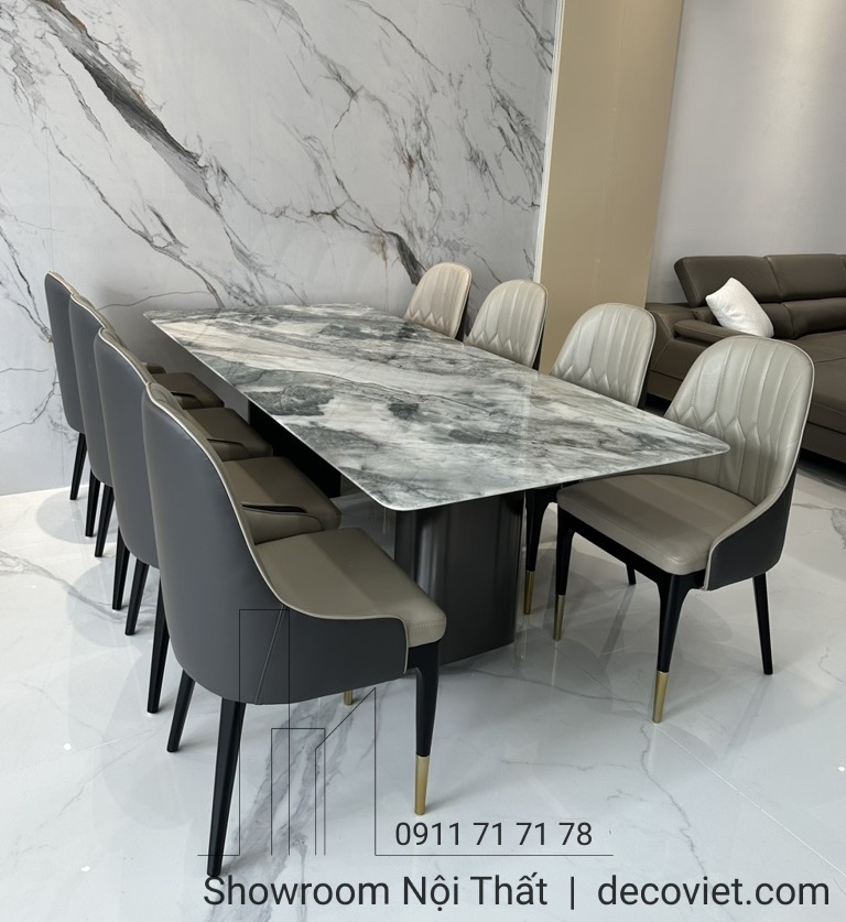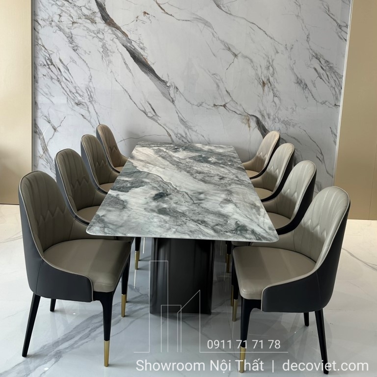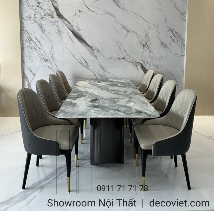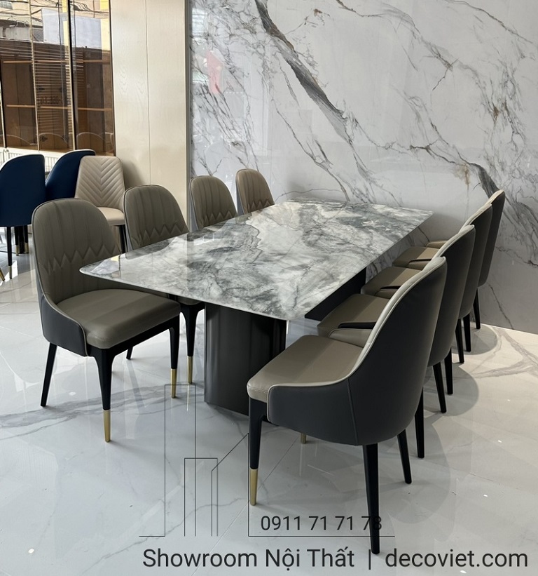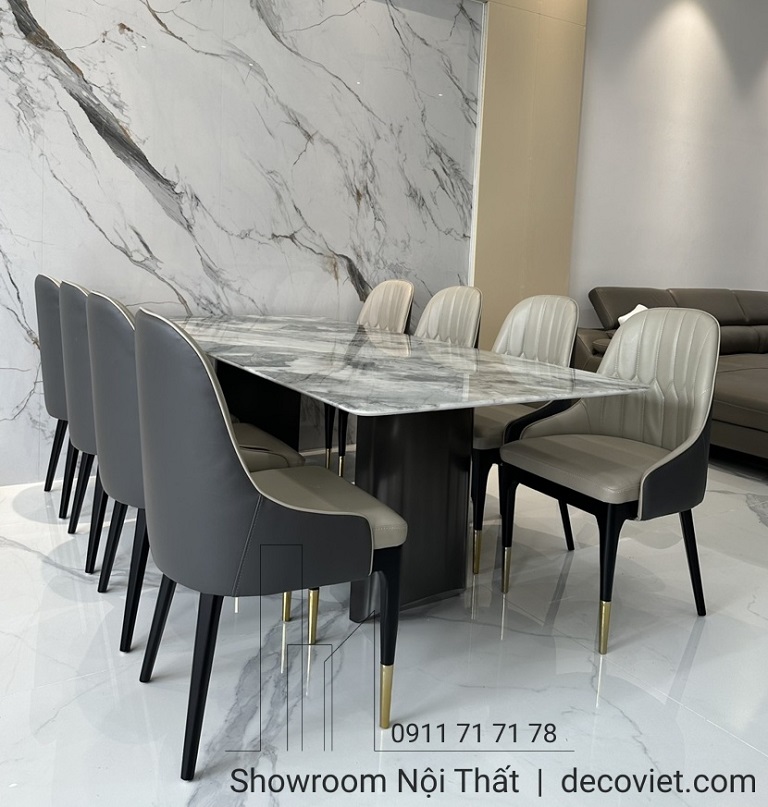 Một bộ bàn ghế ăn nhập khẩu hiện đại cao cấp vừa khẳng định được vị thế của gia chủ cũng vừa tạo nên nét đẹp riêng biệt cho không gian ngôi nhà. Bộ bàn ăn mặt đá nhập khẩu 8 ghế hiện đại tại DecoViet sẽ mang đến sự sang trọng, đẳng cấp trong từng đường nét, góp phần tạo dựng nên điểm nhấn ấn tượng cho căn bếp, từ khâu thiết kế, chọn kích thước giữa bàn ăn và ghế ăn, chất liệu mặt đá, kiểu dáng đều được DecoViet chọn lựa kỹ càng để tạo nên một sản phẩm đẹp và bắt mắt.