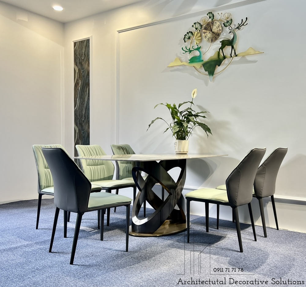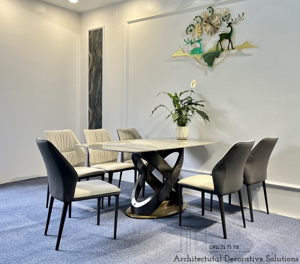 Bàn ăn 843S là một trong những mẫu bàn ăn được thiết kế theo xu hướng hiện đại, tối giản nhưng không nhàm chán. Phần mặt bàn được làm từ đá cao cấp với vân đá cực kỳ sang trọng.