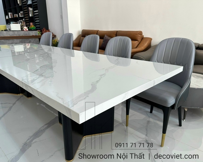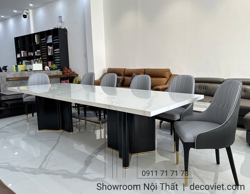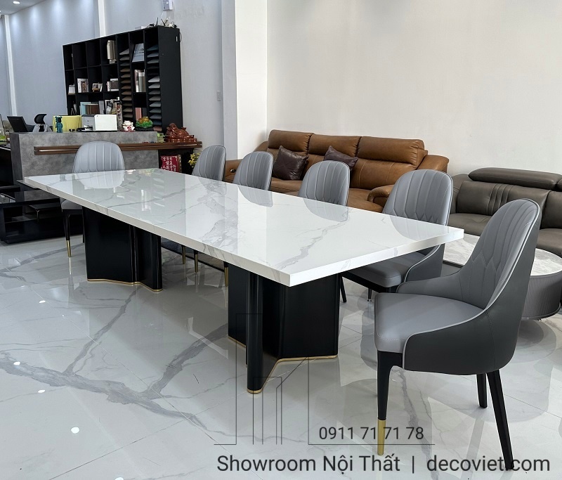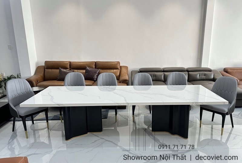 Bộ bàn ăn ăn mặt đá nhập khẩu 8 - 10 ghế sẽ mang đến không gian ngồi rộng rãi đối với những gia đình có đông thành viên hoặc thường xuyên có khách ghé thăm. Ngoài ra, những phòng ăn có diện tích rộng rãi bộ bàn ghế ăn 10 ghế sẽ giúp không gian hài hòa và cân đối hơn. Bàn Ăn Mặt Đá Nhập Khẩu Cao Cấp 1758S có mặt tại DecoViet với chất liệu mặt đá bền bỉ, cùng với sự tỉ mỉ trong từng đường nét thiết kế, mang đến sự thoải mái, êm ái khi dùng bữa cũng như vẻ đẹp hoàn mỹ cho không gian ăn uống.