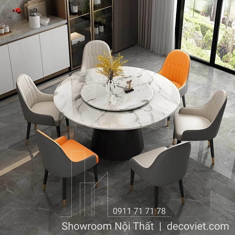 Nếu bạn đang tìm địa chỉ cửa hàng có nhiều mẫu bàn ăn tròn đẹp 4, 6, 8, 10, 12, 16 ghế thì hãy đến ngay với Nội Thất DecoViet để tham khảo những bộ bàn ăn tròn xoay có sẵn tại showroom. Bên cạnh trải nghiệm trực tiếp sản phẩm Bàn Ăn Tròn 6 Người Nhập Khẩu 1724S, tại DecoViet còn có hàng trăm mẫu bàn ăn tròn mặt đá nhập khẩu từ phong cách cổ điển đến hiện đại, được thiết kế theo xu hướng mới nhất trong năm. Liên hệ ngay với DecoViet để được tư vấn chọn cho gia đình mình bộ bàn ăn phù hợp nhất!