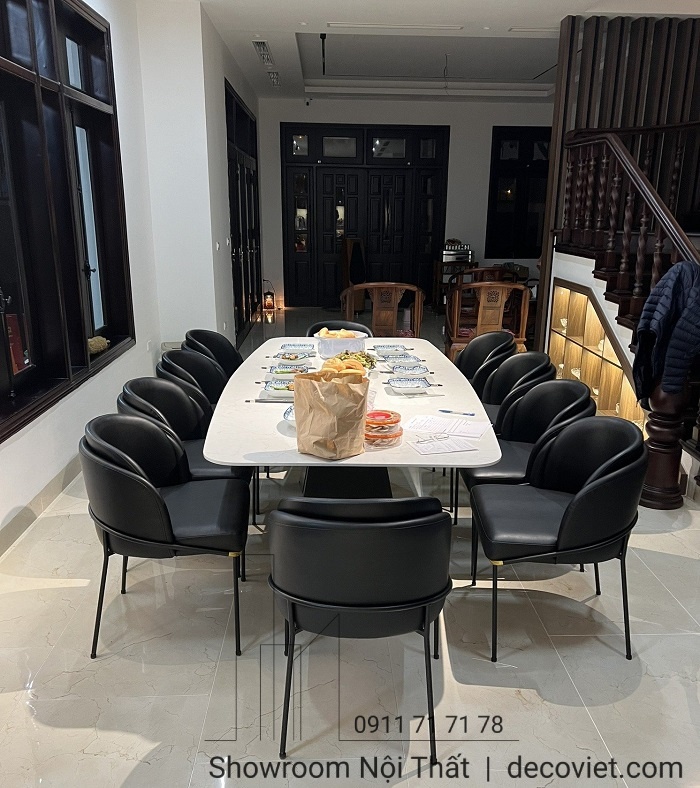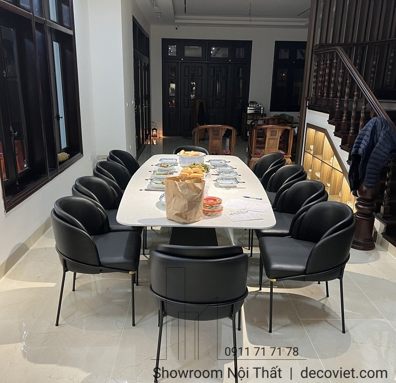 Trở lại với dòng sản phẩm bàn ghế ăn cao cấp cho gia đình, DecoViet xin giới thiệu đến bạn. Bộ Bàn Ăn 10 Ghế Cao Cấp 1641S với sự kết hợp hài hòa giữa chất lượng cùng tính thẩm mỹ vượt bậc. Với thiết kế độc đáo theo xu hướng nội thất phòng bếp mới nhất hiện nay, bộ bàn ăn 10 người mặt đá toát lên vẻ đẹp tinh tế, tạo ra một không gian ăn uống sang trọng và thời thượng. Cùng với độ hoàn hảo trong từng chi tiết, từng đường nét của bộ bàn ăn 10 ghế đều được tính toán kĩ lưỡng, mang đến sự thoải mái và tiện dụng nhất cho người dùng.