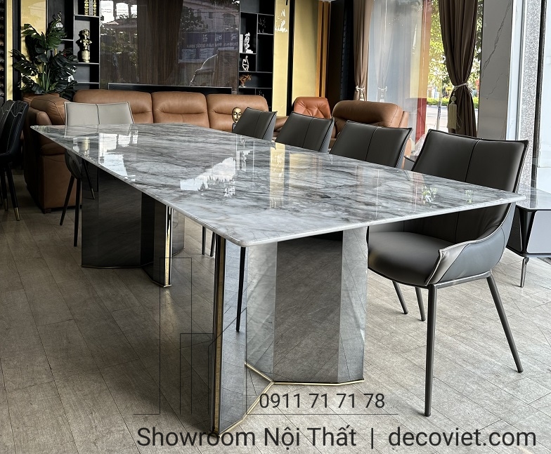 Một bộ bàn ăn 10 ghế nhập khẩu không chỉ khẳng định được vị thế của gia chủ mà còn tạo nên nét đẹp riêng biệt cho không gian ngôi nhà. Bộ bàn ăn mặt đá nhập khẩu 10 ghế tại DecoViet sẽ mang đến sự sang trọng, đẳng cấp trong từng đường nét, góp phần tạo dựng nên điểm nhấn ấn tượng cho căn bếp, từ khâu thiết kế, chọn kích thước giữa bàn ăn và ghế ăn, chất liệu mặt đá, kiểu dáng đều được DecoViet chọn lựa kỹ càng để tạo nên một sản phẩm đẹp và bắt mắt.
