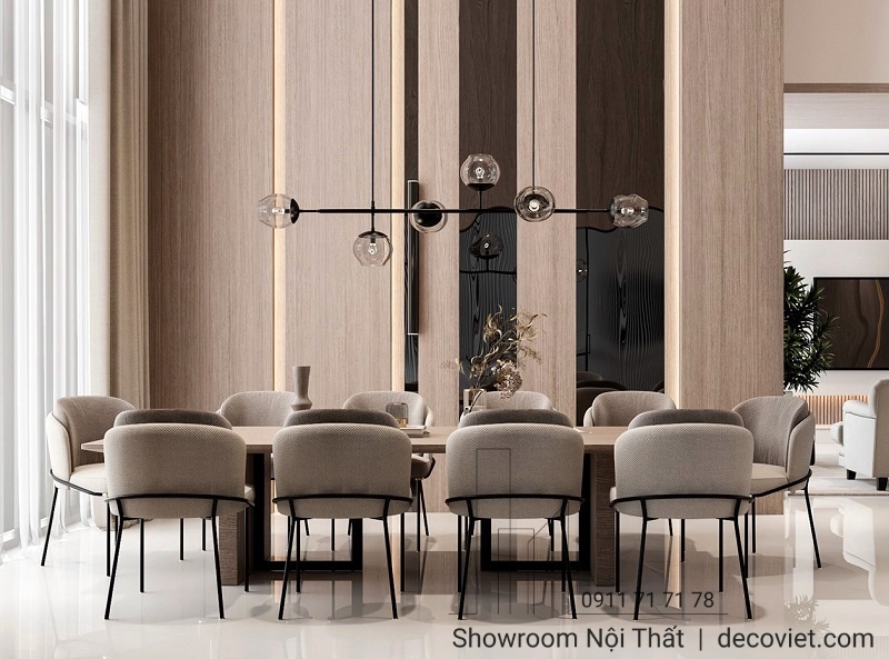 + Bộ bàn ăn 10 ghế hiện đại phục vụ tốt cho nhu cầu sử dụng của gia đình có đông thành viên hoặc những căn bếp rộng rãi giúp không gian thêm cân đối và hài hòa hơn. Bộ bàn ăn 10 ghế với kích thước vừa phải, mặt bàn rộng rãi, bạn hoàn toàn có thể tự tin tổ chức các buổi tiệc tùng ấm cúng.