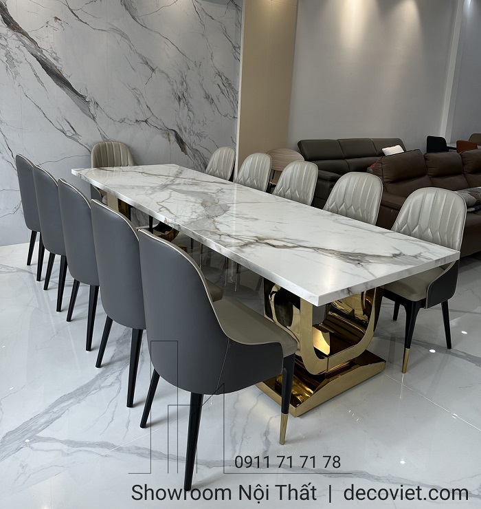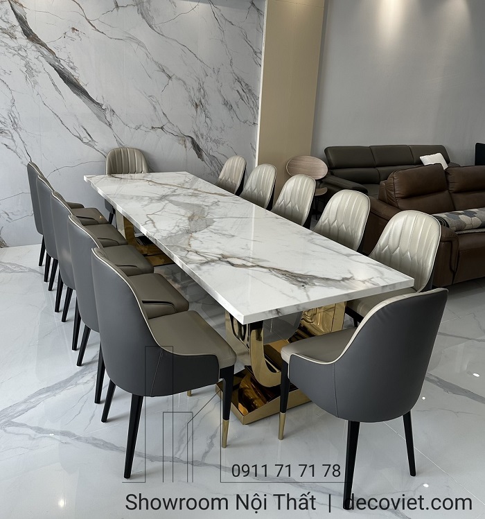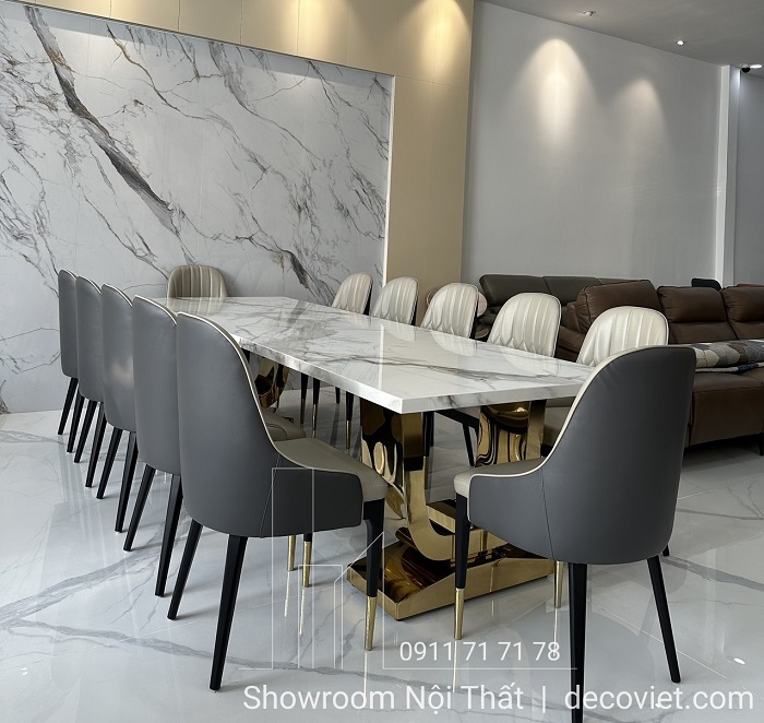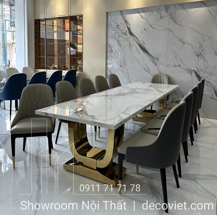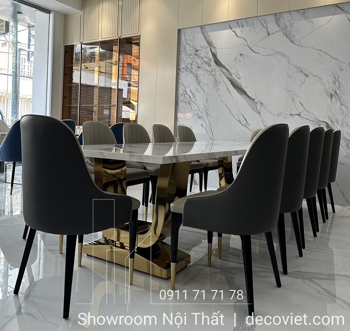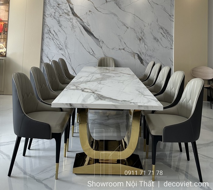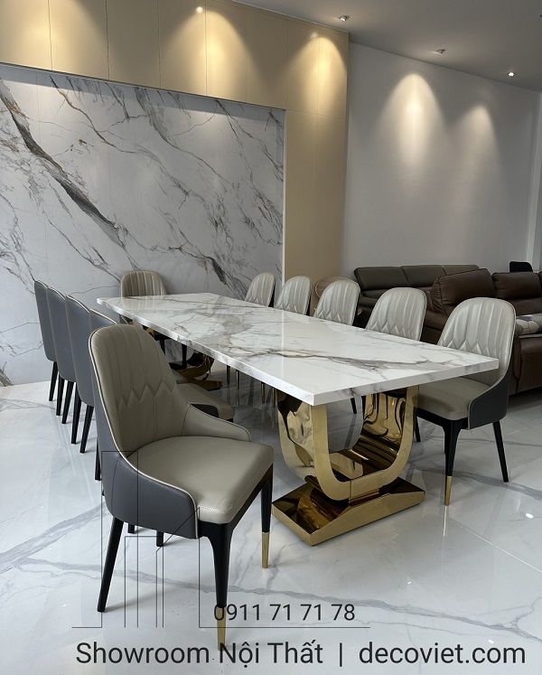 Việc tìm kiếm và lựa chọn những mẫu bàn ăn mặt đá nhập khẩu cao cấp đẹp mắt cho không gian bếp là vấn đề luôn được đông đảo quý khách hàng quan tâm. Bộ bàn ăn mặt đá nhập khẩu 12 ghế hiện đại tại DecoViet sẽ mang đến sự sang trọng, đẳng cấp trong từng đường nét, góp phần tạo dựng nên điểm nhấn ấn tượng cho căn bếp nhà bạn.
