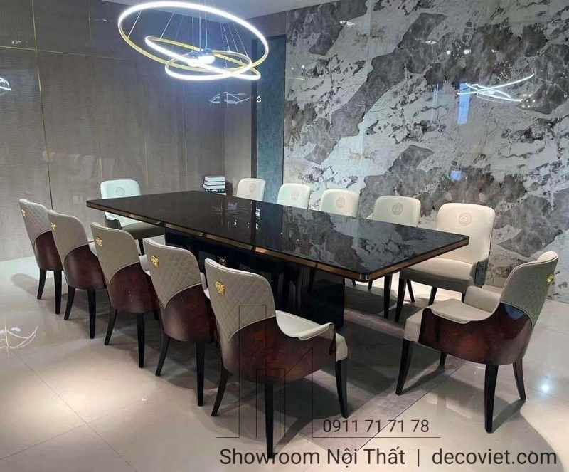 Hãy đến ngay DecoViet để sở hữu một không gian bếp hoàn hảo với Bộ Bàn Ăn 12 Người Cao Cấp 1672S. Bộ bàn ăn mặt đá sang trọng, mang phong cách hiện đại cùng thiết kế thời thượng sẽ là điểm nhấn hoàn mỹ cho không gian sống của quý khách!