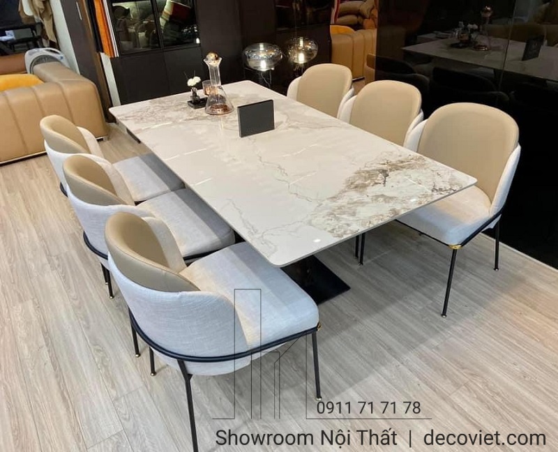 Nổi bật với thiết kế thanh lịch, đơn giản cùng tone màu ấm cúng của mặt đá ceramic hoàn mỹ, bộ bàn ăn 6 ghế mặt đá mà DecoViet mang đến cho bạn dưới đây giúp nâng tầm trải nghiệm dùng bữa cũng như tô điểm không gian sống của quý khách thêm tiện nghi.