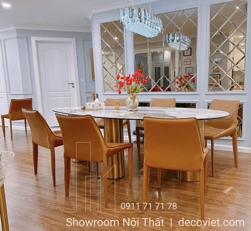 - Khi kết hợp bàn ăn mặt đá 6 ghế tại DecoViet với những mẫu ghế ăn bọc da sang trọng, êm ái sẽ càng tôn lên nét đẹp hiện đại và đẳng cấp cho căn bếp.