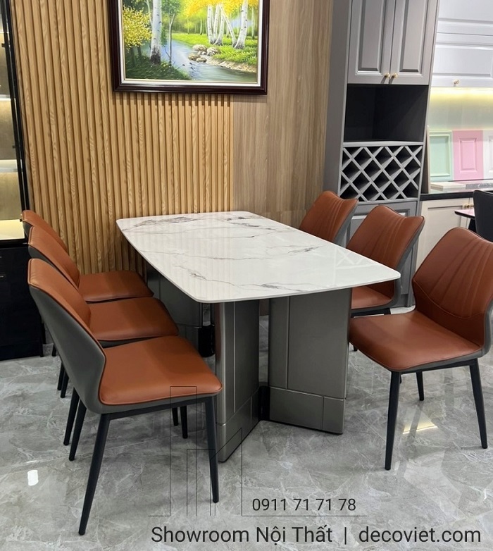 Một không gian phòng bếp đẹp nên sở hữu một bộ bàn ghế ăn xứng tầm. Bởi vì bên cạnh mang lại sự sang trọng và ấn tượng cho không gian, mà bộ bàn ăn 6 ghế mặt đá còn giúp cho căn bếp trở nên hài hòa, đáp ứng đủ nhu cầu sử dụng cho gia đình. Bộ Bàn Ăn 6 Ghế Mặt Đá 1666S là mẫu bàn ăn đẹp mà DecoViet muốn gợi ý đến bạn. Với thiết kế hoàn hảo từ kiểu dáng, chất lượng bền bỉ vượt trội, bộ bàn 6 người này giúp căn bếp của bạn trở nên đẳng cấp và tinh tế hơn, đồng thời giúp phục vụ tốt những bữa ăn mỗi ngày và khi gia đình bạn tổ chức những buổi tiệc tùng, họp mặt ấm cúng.