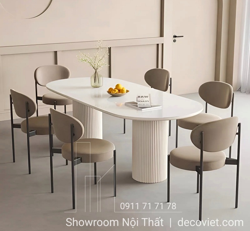 - Bộ bàn ghế ăn 6 ghế tại DecoViet được ưa chuộng bởi phục vụ tốt cho nhu cầu sử dụng của gia đình từ 4 - 6 chỗ ngồi thoải mái. Đây là mẫu bàn ăn phù hợp với đa số căn hộ hiện nay khi diện tích nhà ở ngày càng hạn chế. Bộ bàn ăn 6 ghế với kích thước vừa phải, mặt bàn rộng rãi, bạn hoàn toàn có thể tự tin tổ chức các buổi tiệc tùng ấm cúng.