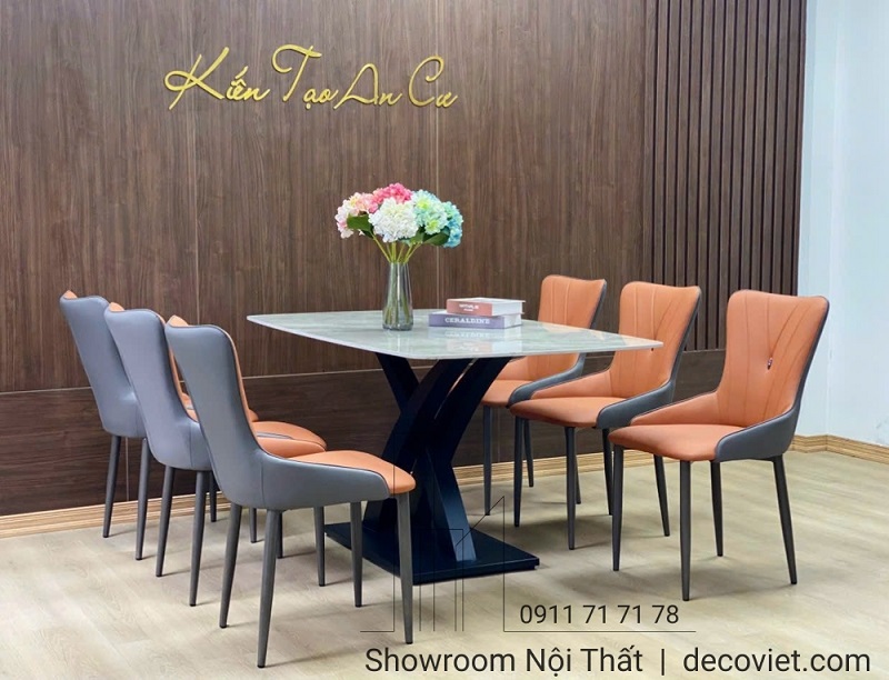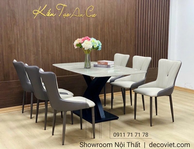 ▶ Bàn ăn mặt đá 6 ghế có kích thước vô cùng phổ biến nên phần lớn là hàng có sẵn tại showroom trưng bày với nhiều kiểu dáng. Bên cạnh đó, DecoViet có xưởng đặt đóng bàn ghế ăn giá rẻ theo yêu cầu. Bạn có thể tùy chọn mẫu mã, kiểu dáng, màu sắc bộ bàn ghế ăn mà mình yêu thích.