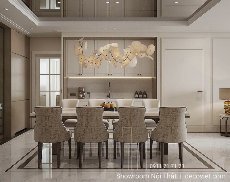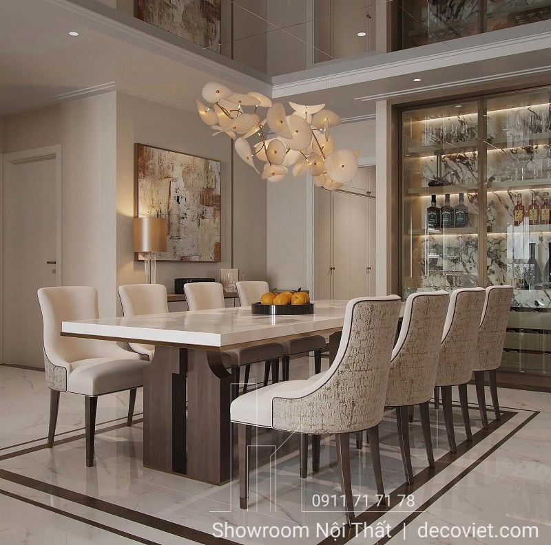 Trở lại với dòng sản phẩm bàn ăn đẹp cho gia đình, DecoViet xin giới thiệu đến bạn Bộ Bàn Ghế Ăn Cao Cấp 1709S với sự hài hòa giữa chất lượng cùng tính thẩm mỹ vượt bậc. Với thiết kế độc đáo theo xu hướng nội thất phòng bếp mới nhất hiện nay, bộ bàn ăn 8 ghế chân gỗ mặt đá toát lên vẻ đẹp tinh tế, tạo ra một không gian ăn uống ấm cúng nhưng vô cùng sang trọng và thời thượng. Với độ hoàn hảo trong từng chi tiết, từng đường nét của bộ bàn ăn 8 ghế đều được tính toán kĩ lưỡng, mang đến sự thoải mái và tiện dụng nhất cho người dùng.