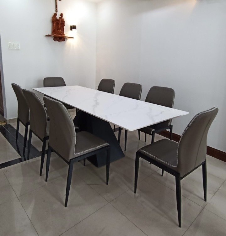 Bàn Ăn Kéo Dài 8 Ghế 792S là dòng bàn ăn mặt đá thông minh nhập khẩu cao cấp, thiết kế có thể kéo dài 2 đầu. Với kích thước nhỏ là 160 cm, kích thước kéo dài là 230cm. Mặt đá Ceramic chống chầy xước, chống ố nước công nghệ mới nhất hiện nay. Khung thép sơn tĩnh điện chống hoen rỉ.
