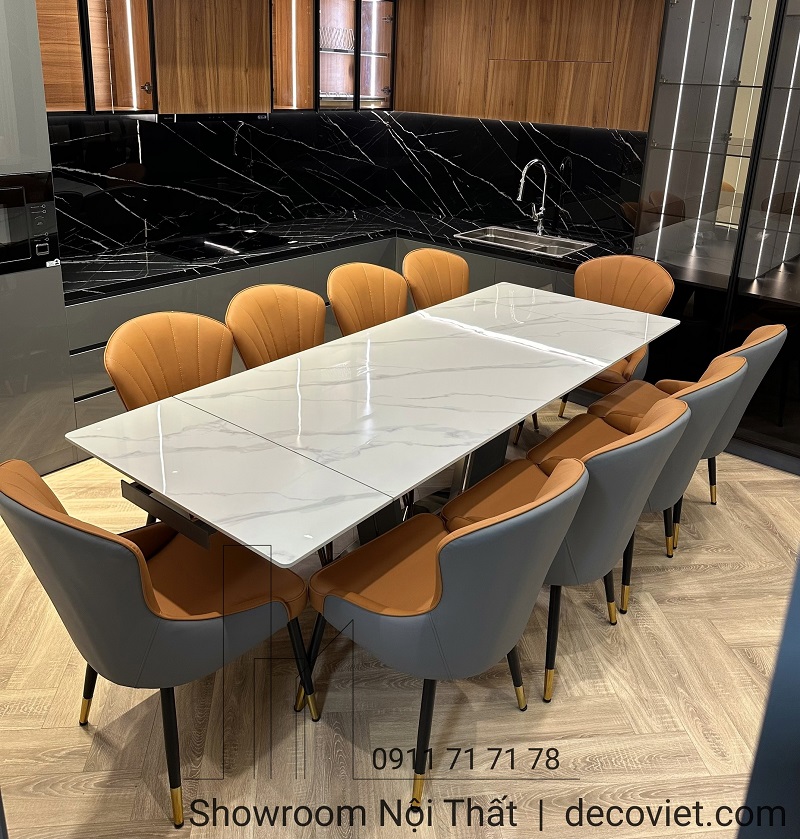 Bàn ăn thông minh kéo dài luôn là lựa chọn hàng đầu giúp tối ưu diện tích căn bếp hiệu quả. Sản phẩm Bàn Ăn Kéo Dài Thông Minh 12 Ghế 781S mà Nội thất DecoViet vừa mới ra mắt, ngoài mang đến những giá trị vượt trội, giúp tiết kiệm diện tích cho không gian sống, mà mẫu bàn ăn thông minh mặt đá này còn chính là bộ bàn ghế ăn lý tưởng cho gia đình bạn bởi vẻ đẹp bền bỉ theo thời gian. Thao tác sử dụng dễ dàng, chất liệu mặt đá ceramic cao cấp cùng chân bàn vững chắc, giá thành cạnh tranh, đây chính là những lý do mà mỗi gia đình đều nên sở hữu bộ bàn ăn thông minh nhập khẩu hoàn hảo này.