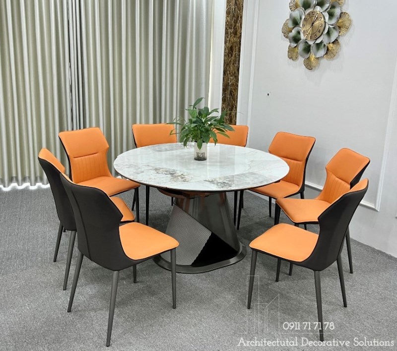 Bàn ăn tròn thông minh hiện nay sử dụng chất liệu bàn ăn mặt đá ceramic, chân sắt cao cấp. Mặt đá với khả năng chống thấm, chống ố, chống trầy xước với vân đá cực kì sang trọng.