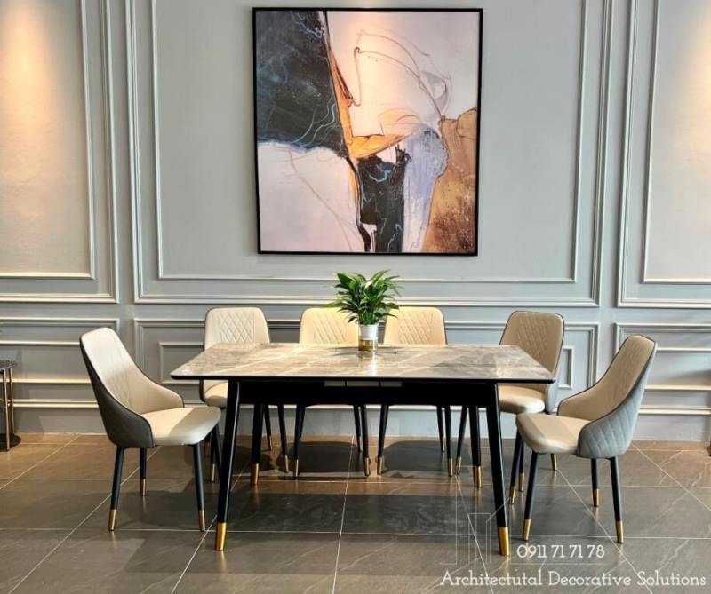Mẫu bàn ăn đẹp sở hữu phần mặt bàn làm từ mặt đá cao cấp kết hợp cùng chân gỗ đẹp vững chắc. Bàn ăn có thể mở rộng từ 1300mm thành 1600mm tùy theo nhu cầu sử dụng của gia chủ. Việc của bạn là chỉ cần trang bị đầy đủ số ghế cho cả gia đình và tốt nhất là số lượng ghế nên dư ra một chút để có thể tiếp đón các vị khách đến dùng bữa cùng gia đình bạn.