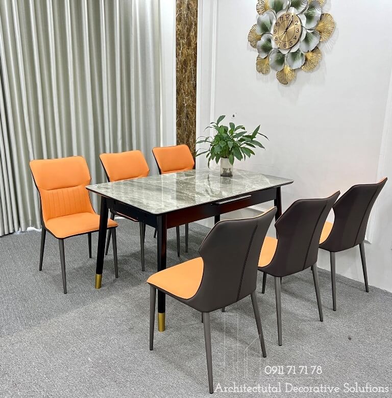 Mẫu bàn ăn đẹp sở hữu phần mặt bàn làm từ mặt đá cao cấp kết hợp cùng chân gỗ đẹp vững chắc. Bàn ăn có thể mở rộng từ 1300mm thành 1600mm tùy theo nhu cầu sử dụng của gia chủ. Việc của bạn là chỉ cần trang bị đầy đủ số ghế cho cả gia đình và tốt nhất là số lượng ghế nên dư ra một chút để có thể tiếp đón các vị khách đến dùng bữa cùng gia đình bạn.
