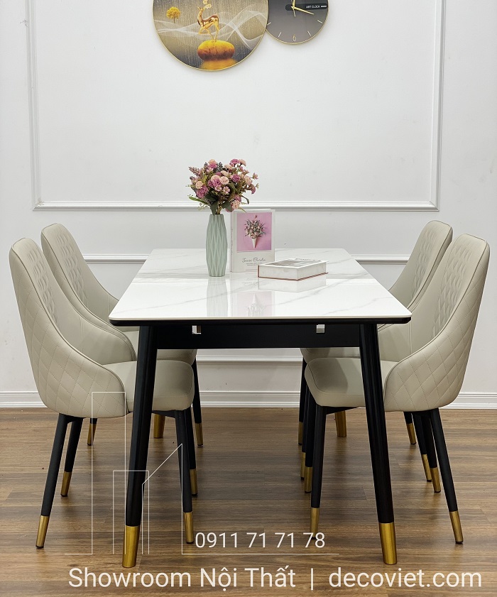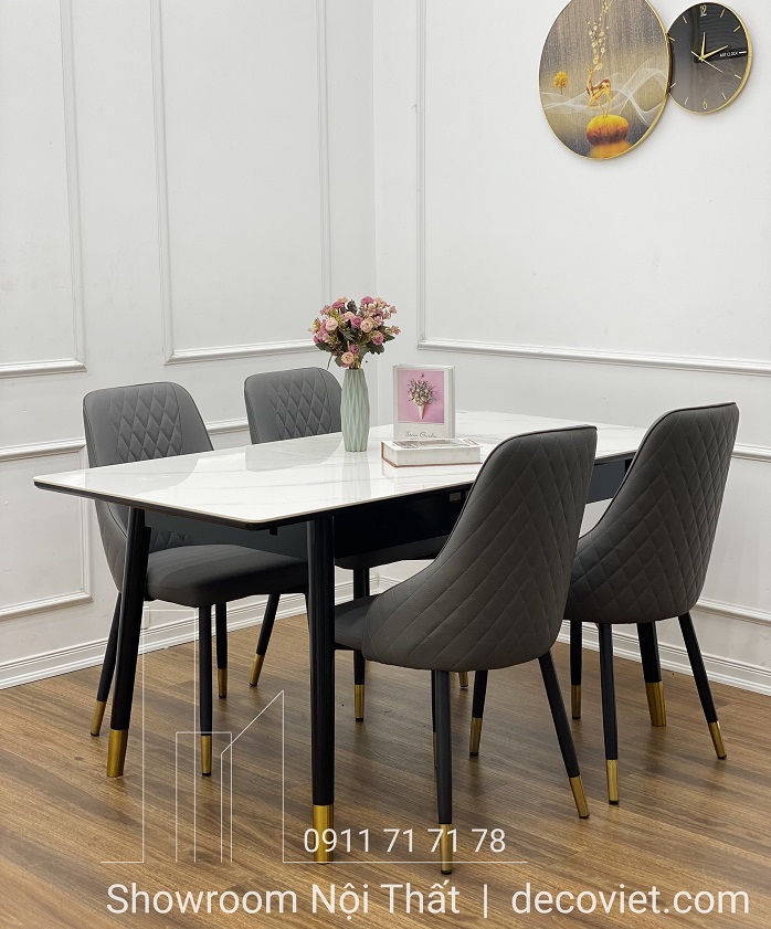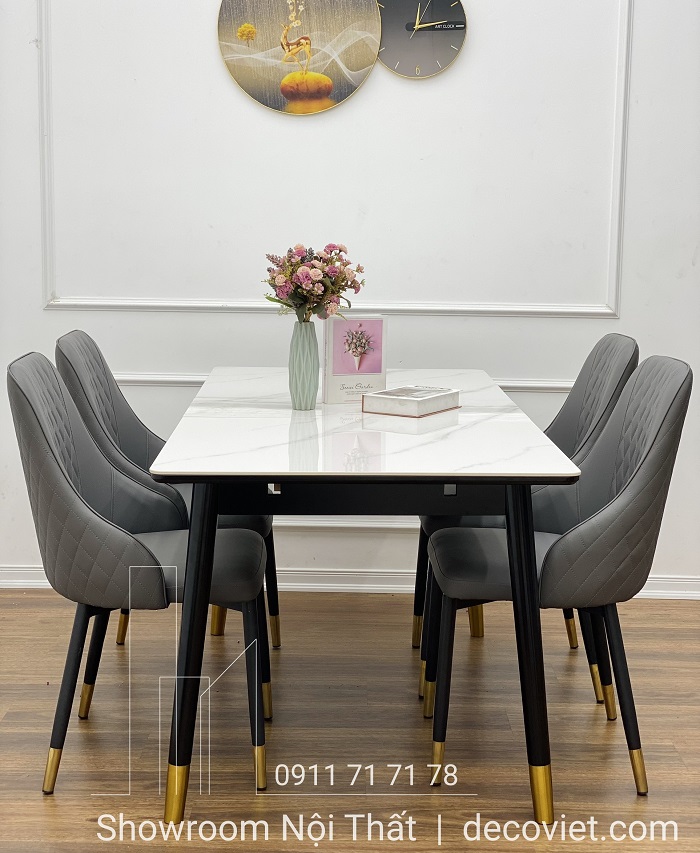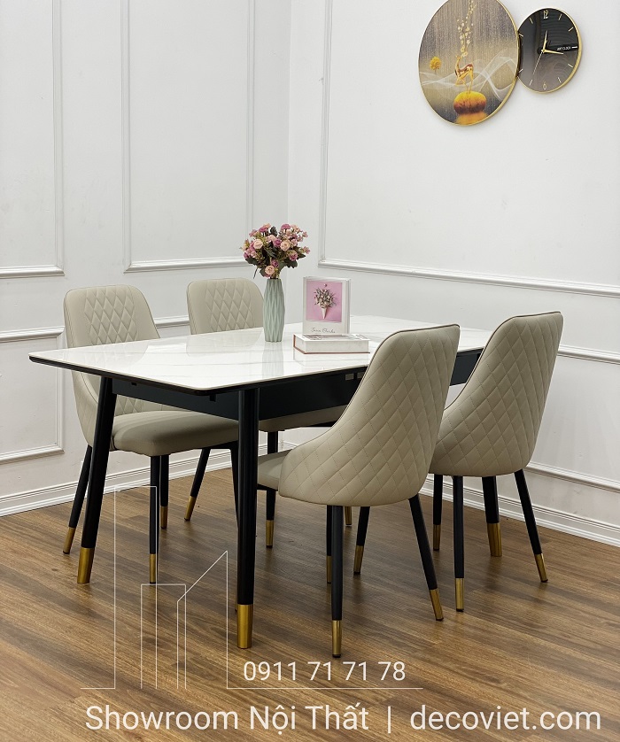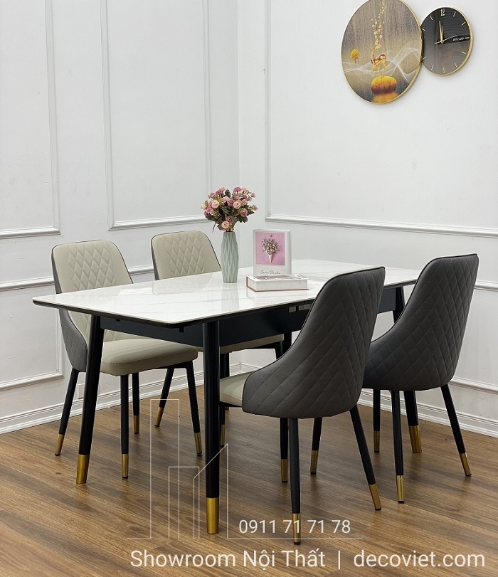 Bàn ăn thông minh kéo dài được coi là "vị cứu tinh" đối với những không gian phòng bếp có diện tích khiêm tốn. Với cơ chế kéo dài và gấp gọn linh hoạt, các mẫu bàn ăn thông minh mặt đá mang đến sự sang trọng trong thiết kế cũng như những trải nghiệm tuyệt vời trong quá trình sử dụng. Bàn Ăn Thông Minh 4 Ghế 1416S mà DecoViet giới thiệu đến bạn sau đây có thiết kế đẹp mắt, hợp xu hướng cùng tính năng thông minh, mở rộng và thu gọn mặt bàn nhanh chóng, đáp ứng nhu cầu về thẩm mỹ cũng như mục đích sử dụng.
