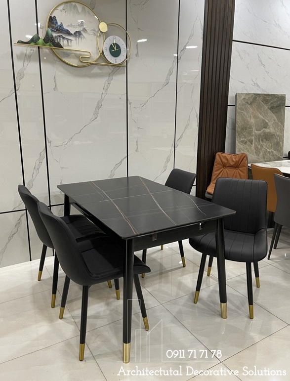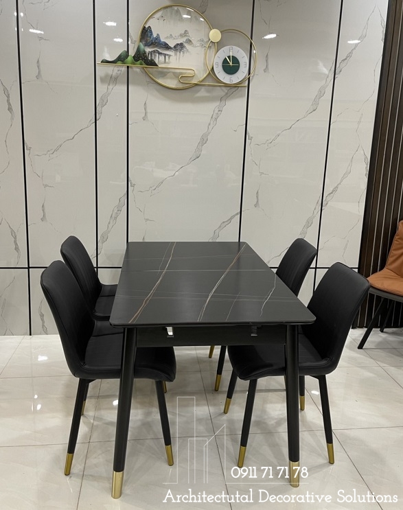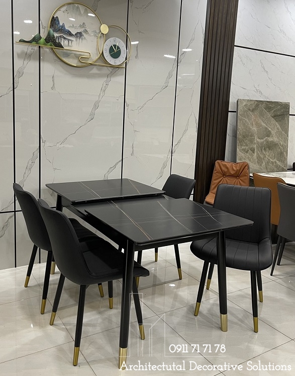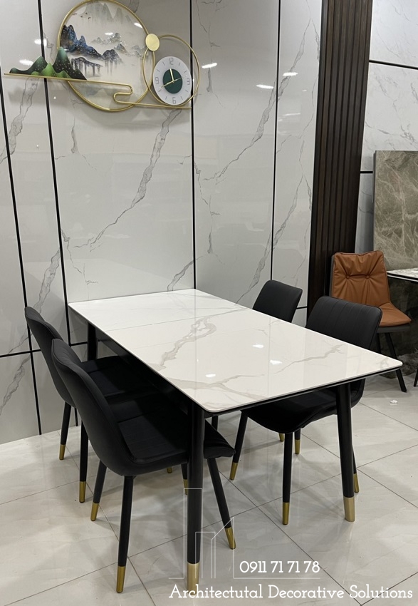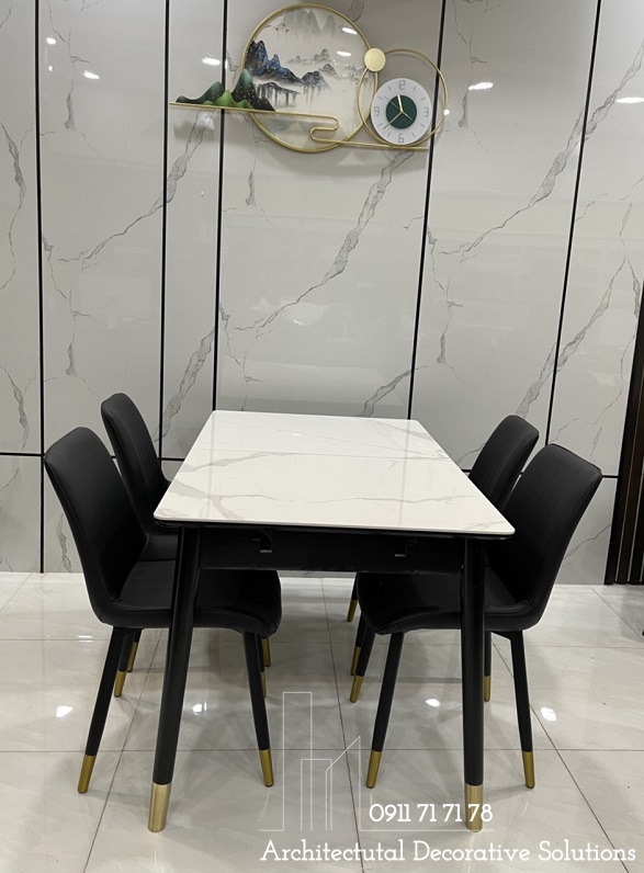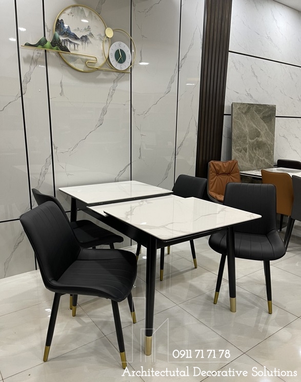 Bàn ăn sử dụng 2 chất liệu được ưu chuộng hiện hành là chân gỗ và mặt đá cao cấp. Chất liệu này vừa mang đến phong cách hiện đại, vừa sang trọng lại dễ sử dụng và tuổi thọ cao.